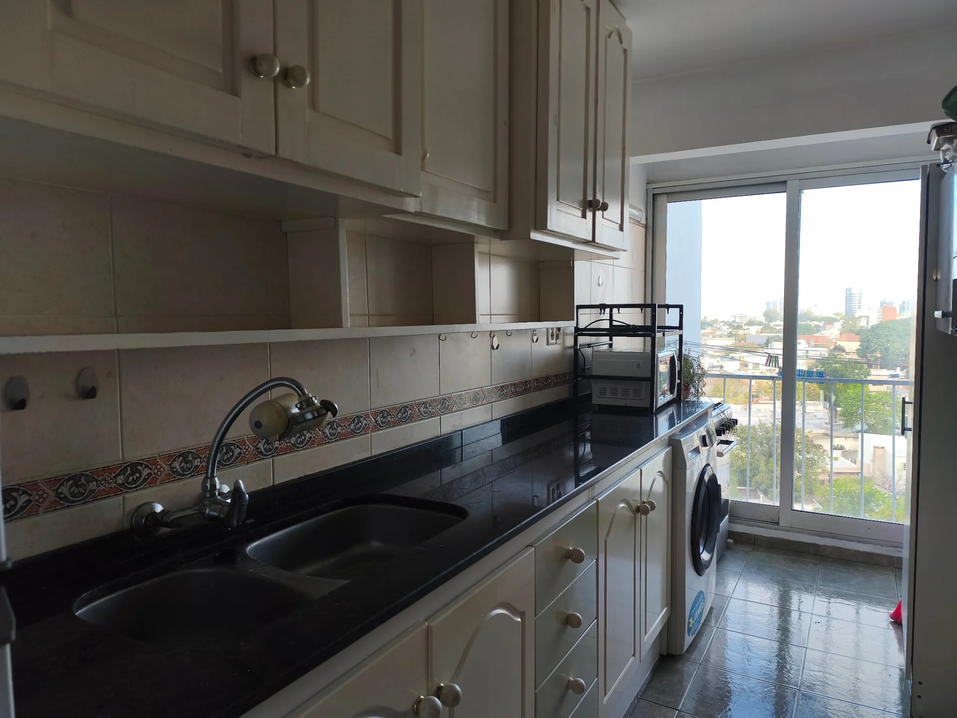 Se encuentra en un piso alto, posee vistas despejadas, y una orientación que lo hace muy soleado y luminoso.