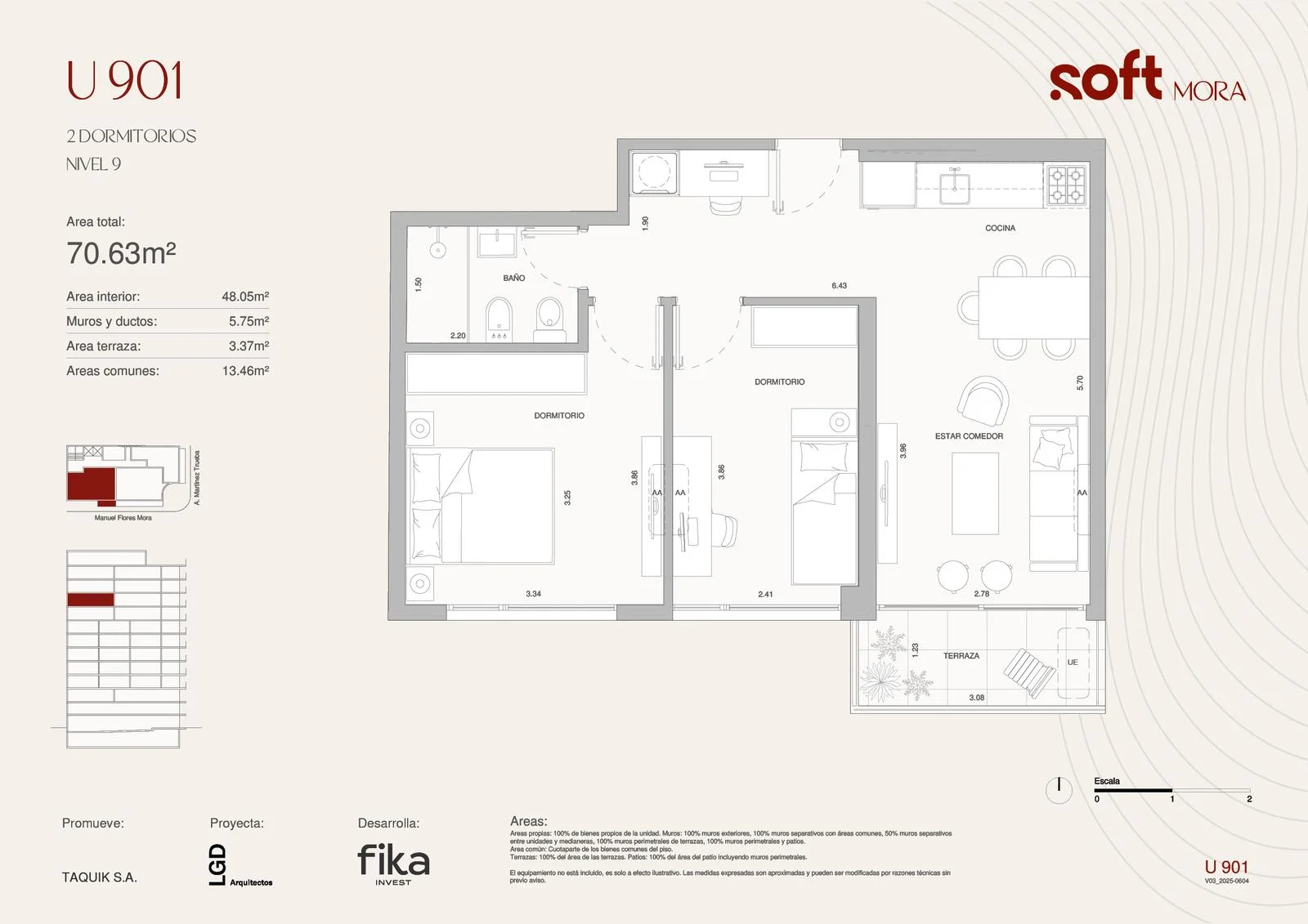 Contará con 34 unidades, todas con ventanales de piso a techo hacia el frente y balcones de generosas dimensiones, garantiza su luminosidad y amplitud en cada ambiente.