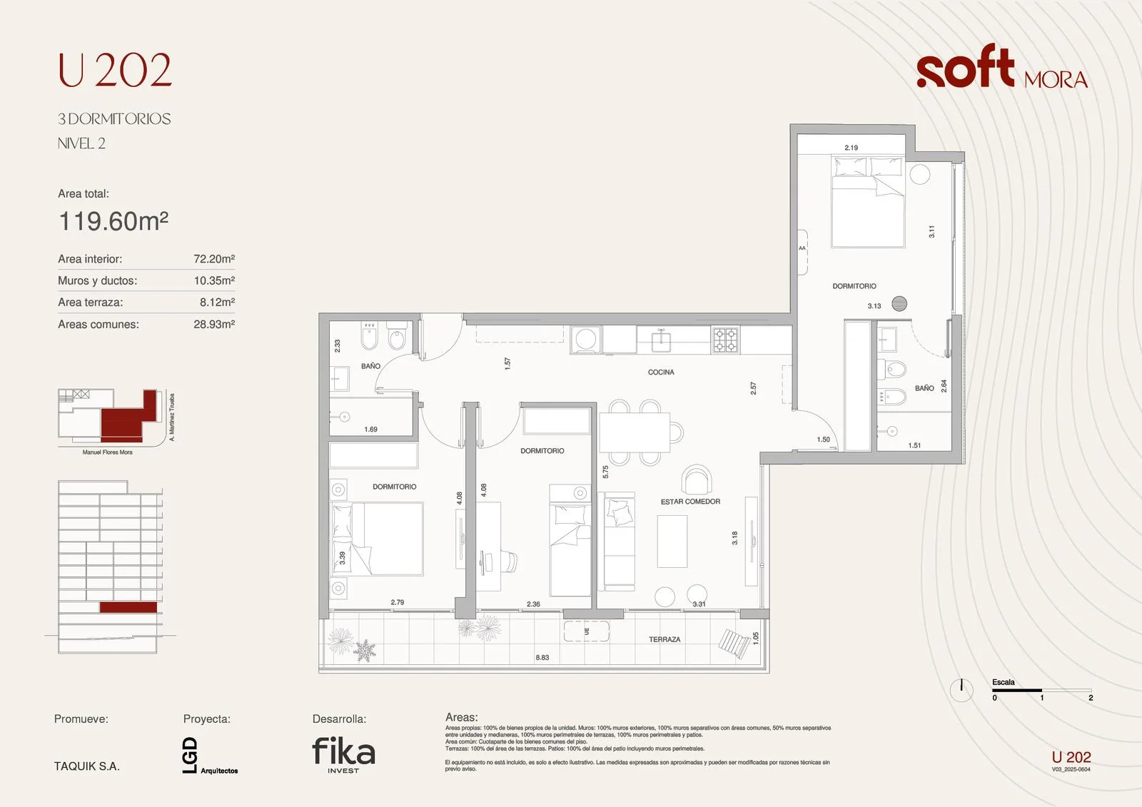 Contará con 34 unidades, todas con ventanales de piso a techo hacia el frente y balcones de generosas dimensiones, garantiza su luminosidad y amplitud en cada ambiente.