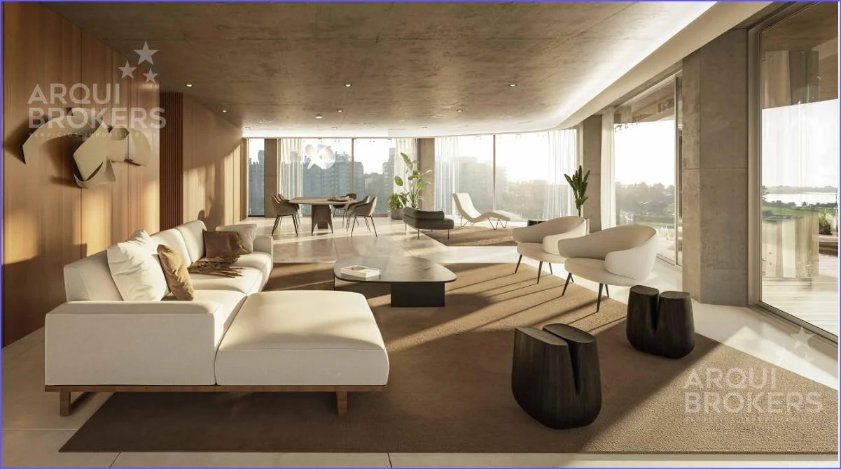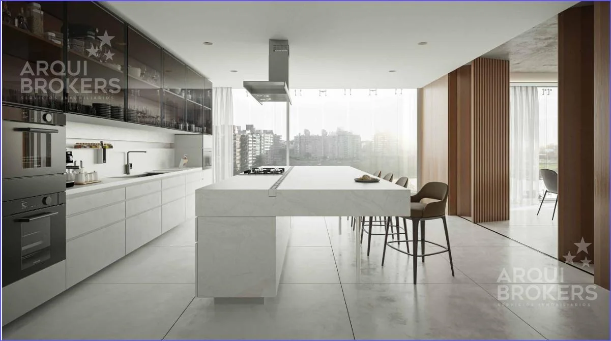 Cuenta con entrada principal y de servicio. Amplio living comedor con amplia terraza al frente, cocina definida con placares e isla, lavadero y baño de servicio, amplio estar, 4 dormitorios en suite con vestidor, 4 baños completos y 1 baño social.
