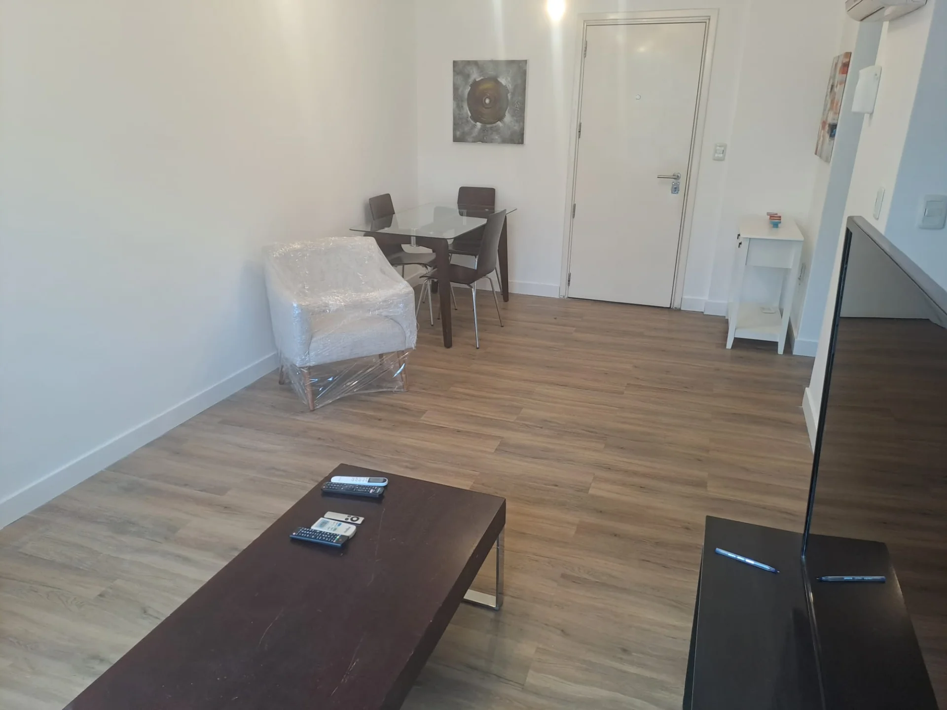 Apartamento de un dormitorio , cocina definida con lugar para comer ,artefacto cocina , campana , heladera y micro , terraza lavadero con un lavarropa , dormitorio con placard , cama y mesas de luz y televisor , Living comedor con mesa butaca y sillon a estrenar (no esta en la foto todavia) televisor y mueble rack y mesa ratona .Dos equipos de aire acondicionado y losa radiante electrica individual por ambiente. Se encuentra a 200 metros de Montevideo Shopping y 350 mts de la rambla .