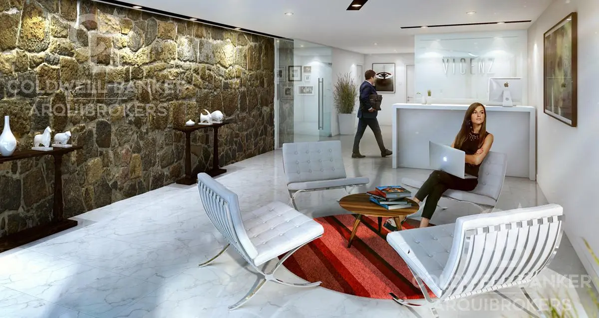El edificio contará con importante hall de acceso, salón para reuniones en piso 11 totalmente equipado y con terrazas panorámicas hacia ambos frentes equipadas.