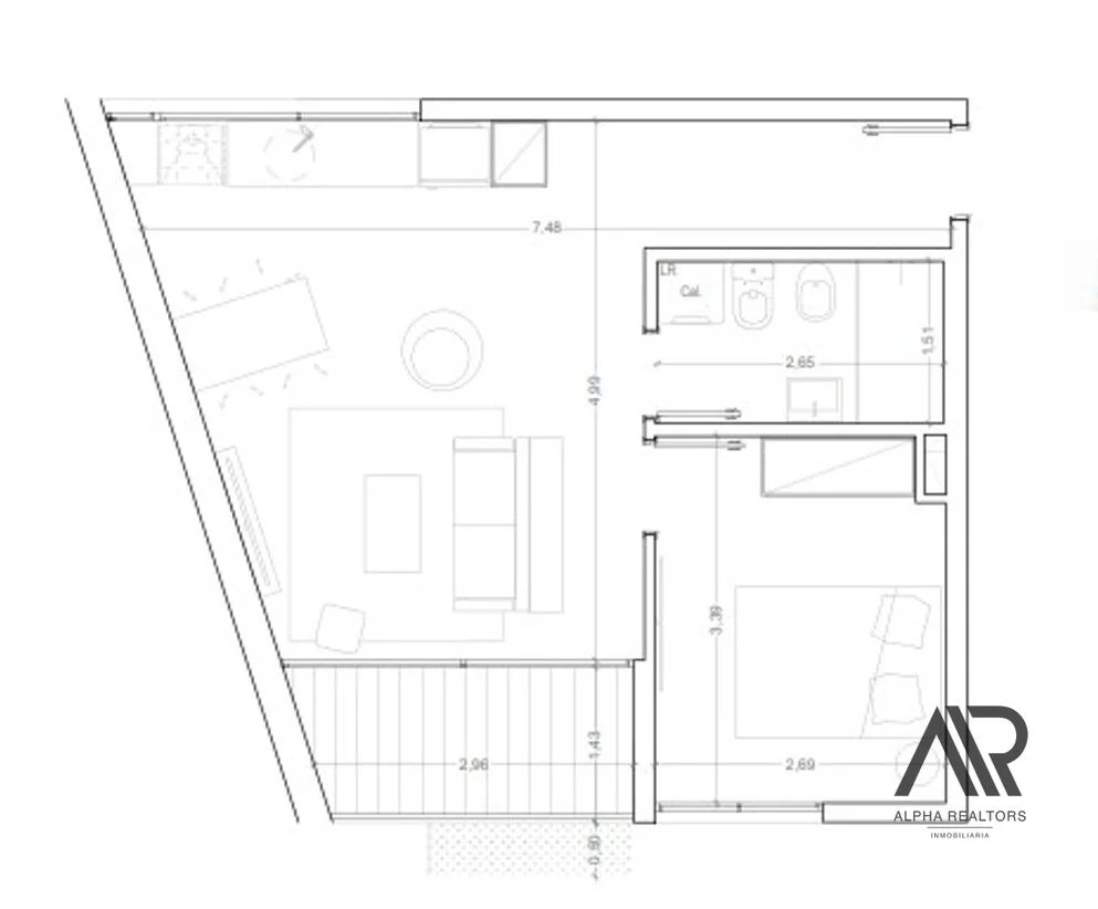 Cuenta con un estar comedor con salida a terraza y cocina integrada, un dormitorio y baño completo.