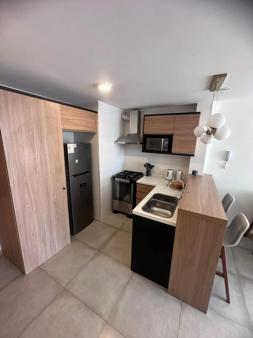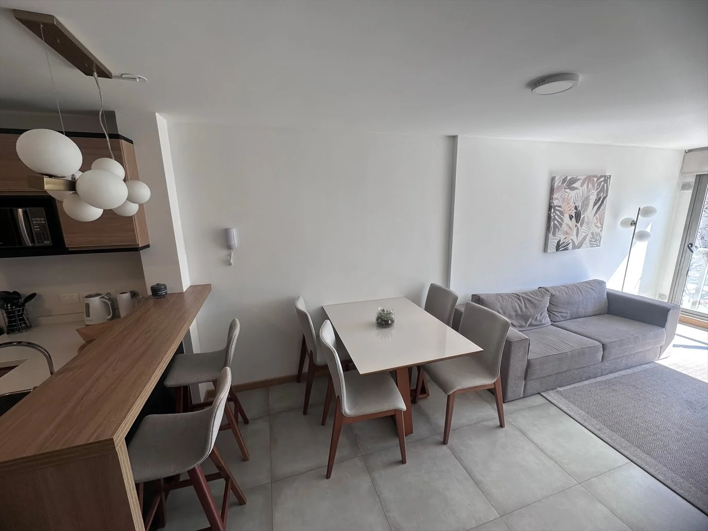 El edificio VICENZ ofrece seguridad con vigilancia las 24 horas y servicio de portería no física. La propiedad se encuentra en excelente estado y cuenta con un garage para un vehículo. Como comodidades, el apartamento posee terraza y calefacción mediante aire acondicionado split tanto en dormitorio como en living comedor. Elegantemente amueblado y con finas terminaciones.