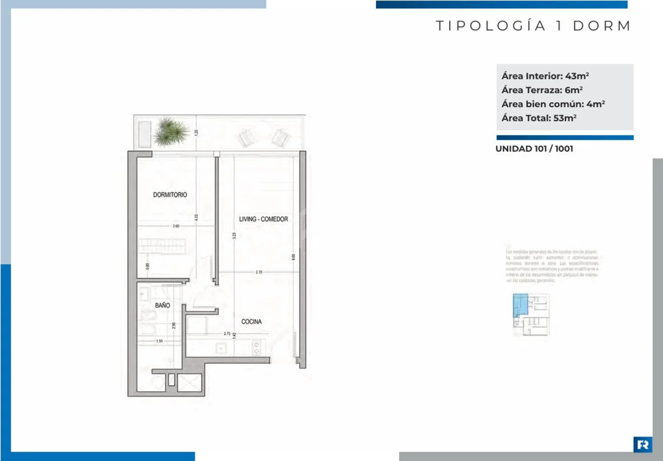 Cuenta con 43m2 interiores + 6m2 de terraza!