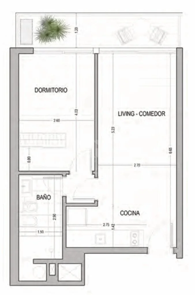 Además baño completo y 100% equipado, cocina integrada al living-comedor y terraza al frente!