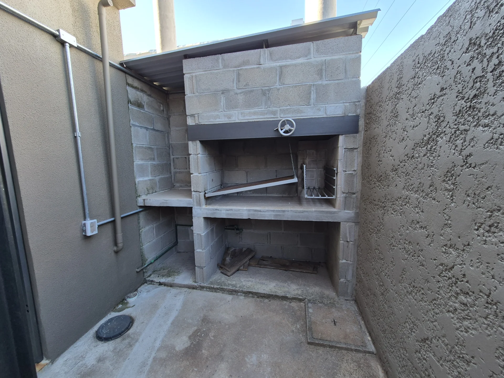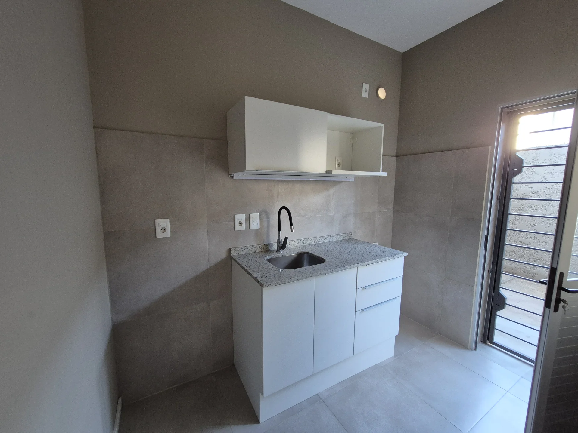 Cocina con placares aéreos y bajo mesada con salida a un patio con parrillero propio.