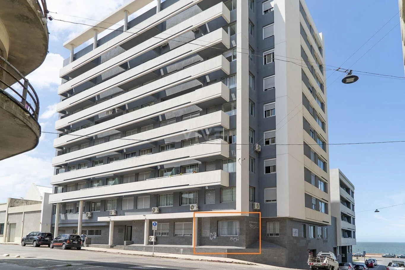 El edificio Escollera se ubica en la Ciudad Vieja, en un predio de importantes dimensiones con frente sobre la Rambla Francia, en una zona de carácter principalmente residencial, de fácil comunicación con otros puntos de la ciudad y muy próximo a la escollera Sarandí.