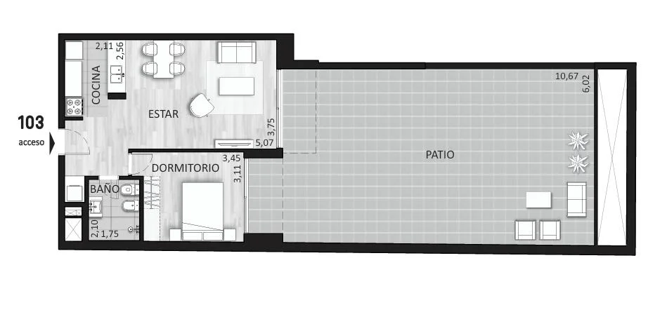 Cada residencia se entrega con aberturas exteriores y barandas en elegante aluminio anodizado, pisos vinílicos de alta calidad en estar y dormitorios, y cortinas de enrollar para mayor comodidad térmica y lumínica. Los baños y cocinas se destacan por sus pisos y revestimientos en cerámica, además de mesadas en granito y mármol que aportan un toque de distinción. El living-comedor se encuentra integrado con cocina.