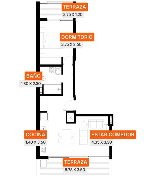 Las unidades cuentan con living comedor con cocina integrada, amplios ventanales y salida a terraza, ofreciendo ambientes luminosos y bien ventilados.
