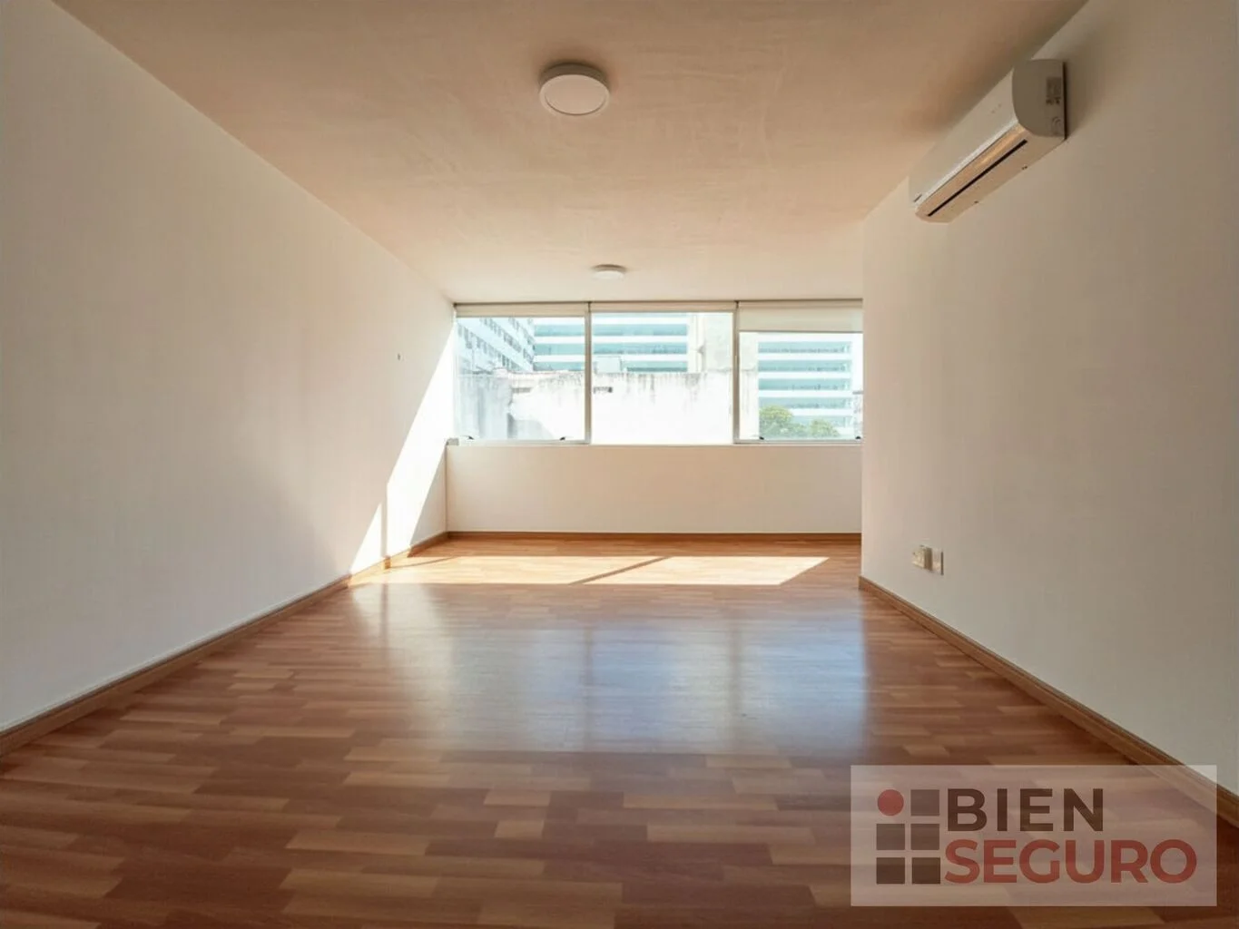 Ref. 70772. CORDÓN. Próximo a Avenida 18 de Julio. Apartamento. Ideal vivienda u oficina. Piso alto. Al frente, despejado. Orientación Este. 52 m2 de superficie total. 50m2 de superficie construida. 2m2 de terraza. 1 dormitorio con placard espejado y terraza cerrada. 1 baño completo, con bacha, placares y extractor. Living comedor amplio en L. Cocina integrada doble mesada de granito y placares. Hall de distribución amplio. Línea blanca de electrodomésticos. Aire acondicionado. Pisos flotantes. Aberturas de doble vidrio. El edificio cuenta con amplios espacios comunes. Lavandería. 2 ascensores. Portería 24 hs. Gastos comunes altos. Garantía: Porto Seguro.