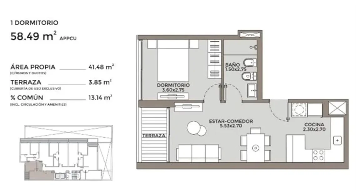 $ ~9,070,000 / + $ 5,000 gastos comunes / U$S 5,321/m2