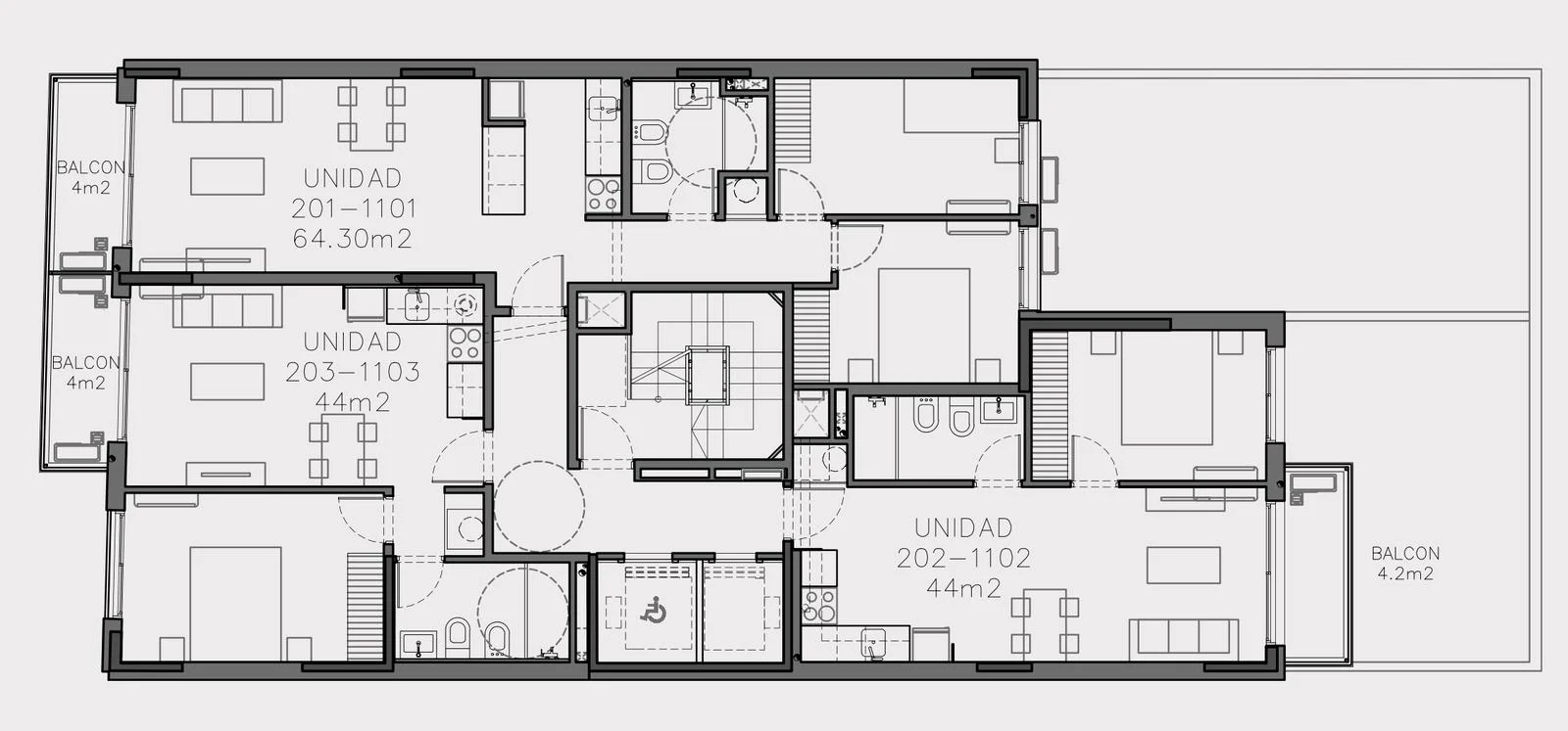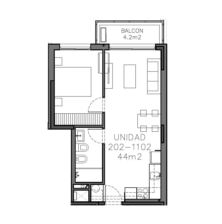 Se proyecta en 13 niveles con 32 unidades, 21 apartamentos de 1 dormitorio y 11 de 2 dormitorios.