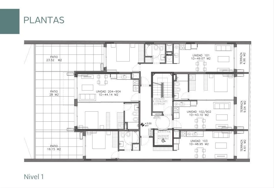 ¡TreeHouse Bienes Raíces Vende! Apartamento de 1 dormitorio con terraza en Cordón. Fecha de entrega: Octubre de 2025. Se ubica sobre Av. Uruguay esq. Tristán Narvaja, es un área urbana muy consolidada, con excelente conexión y transporte. Es una zona residencial y comercial con variedad de servicios. Próximo a universidades y centros de salud. Site Narvaja es un proyecto pensado para el público inversor que logra un perfecto equilibrio entre rentabilidad, calidad y seguridad. El proyecto se compone de 39 unidades de vivienda donde encontraremos monoambientes, unidades de 1 y 2 dormitorios. Además cuenta con 20 plazas de cochera en planta baja y subsuelo, terrazas y zona de parrilleros. Unidad 104- Apartamento en piso 1, contrafrente. Cuenta con 44.14 m2 interiores y 28 m2 exteriores, compuesto por un living comedor con salida al patio y cocina integrada, un dormitorio y un baño. El apartamento contará con las siguientes características: placares sobre y bajo mesada en cocina, pre-instalación de aire acondicionado, aberturas de aluminio con persiana integrada, revestimiento de porcelanato en baño y cocina, pisos de vinílico símil madera y muros de mampostería tradicional tanto exteriores como interiores. Living/comedor: 3.52m x 2.99m. Cocina: 2.22m x 0.85m. Dormitorio: 4.98m x 2.85m. Baño: 2.04m x 1.50m. Patio: 4.17m x 6.34m. Proyecto desarrollado bajo el amparo de la Ley de Viviendas Promovidas (Ley Nº 18.795) por lo que ofrece exoneración del ITP (2% del valor catastral), exoneración de IRAE/IRPF a las rentas generadas por 10 años y exoneración del IP por 10 años. Cocheras opcionales desde U$S20.000. Consulte por otras unidades similares de 1 y 2 dormitorios. . Caracteristicas: PLAYROOM, SEGURIDAD, SUM XINTEL (TBR-TBR-2766)