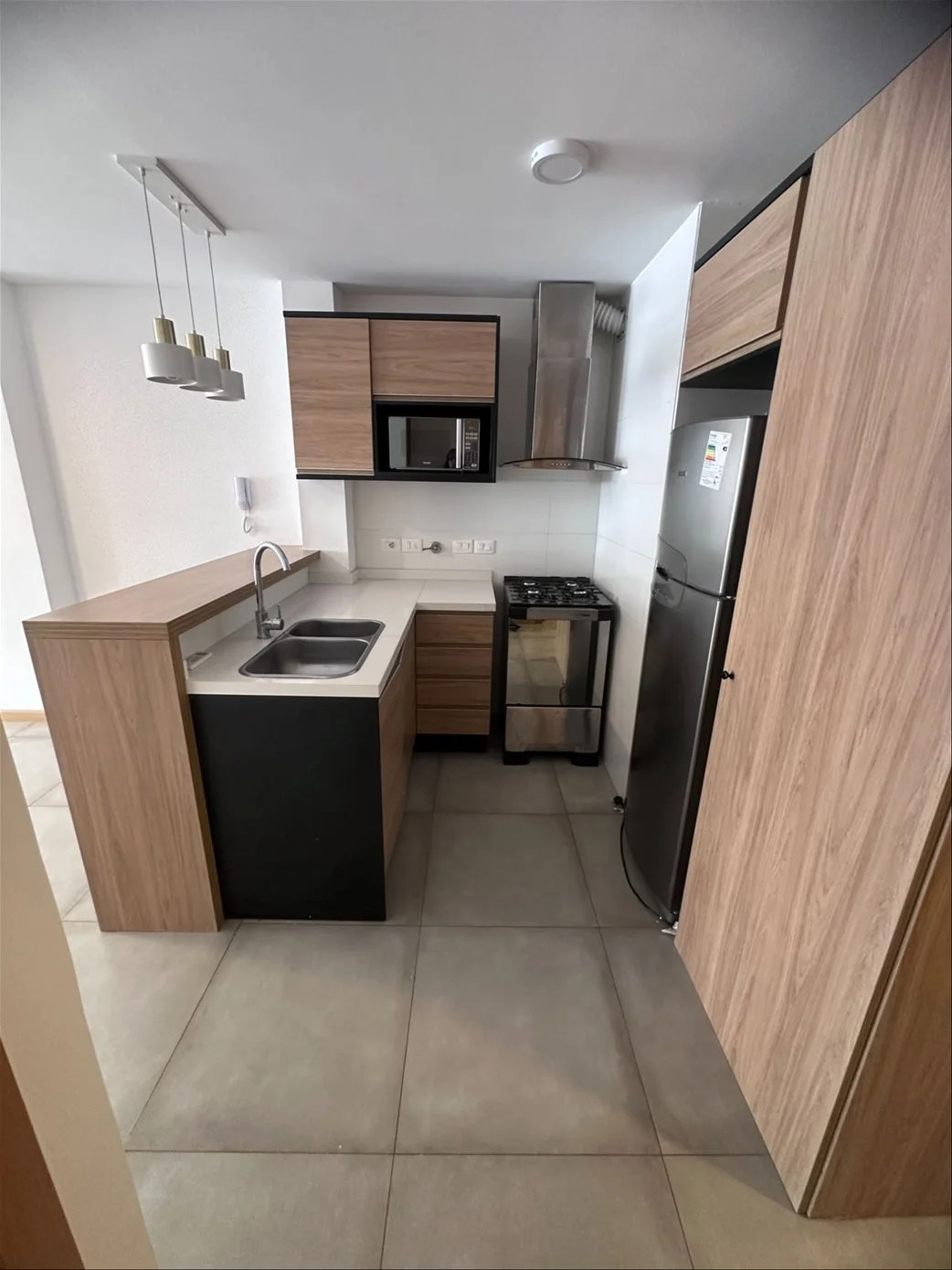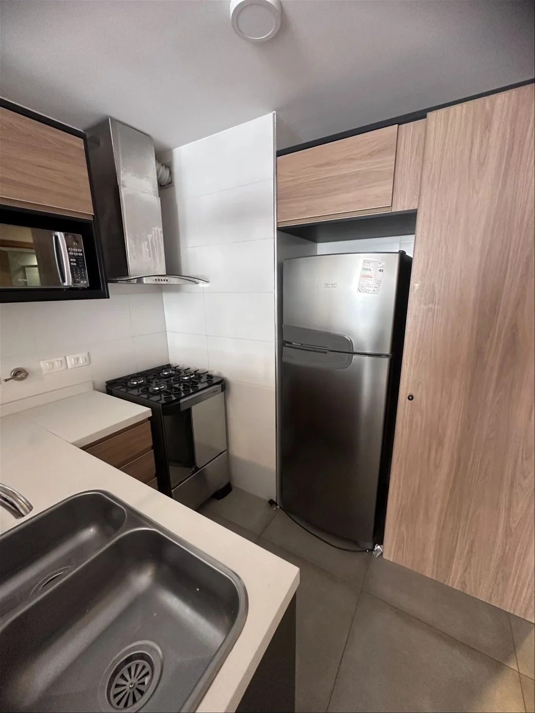Viene equipado con lavarropas, heladera, callejón, microondas, cocina y campana.