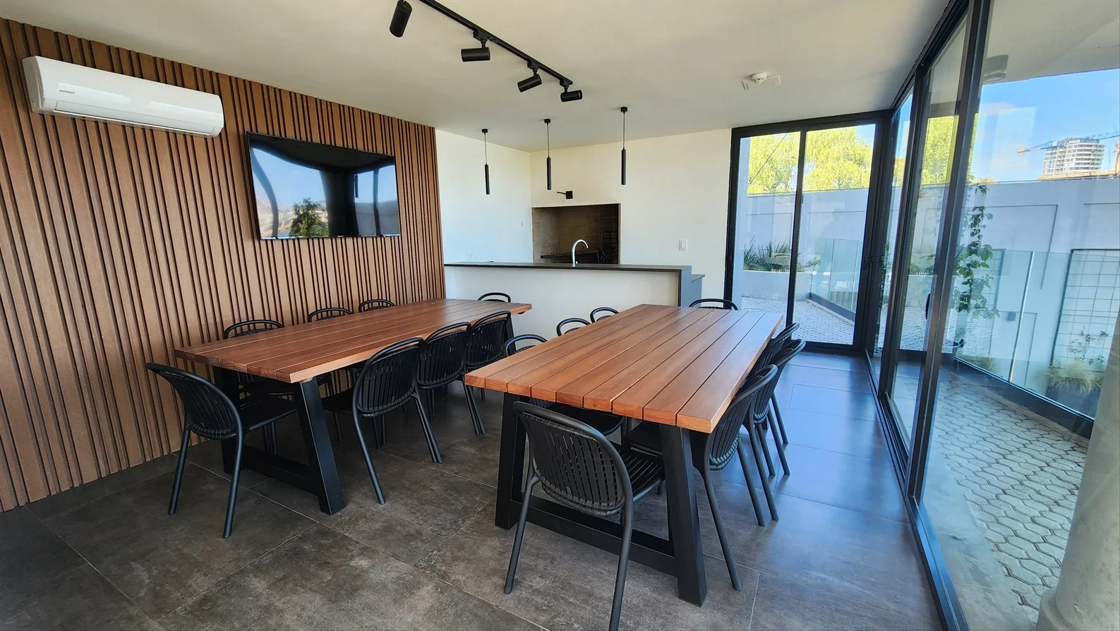 En lo mas alto, el rooftop ambientado con livings, barra móvil y fire pits. Terraza con vista panorámica.