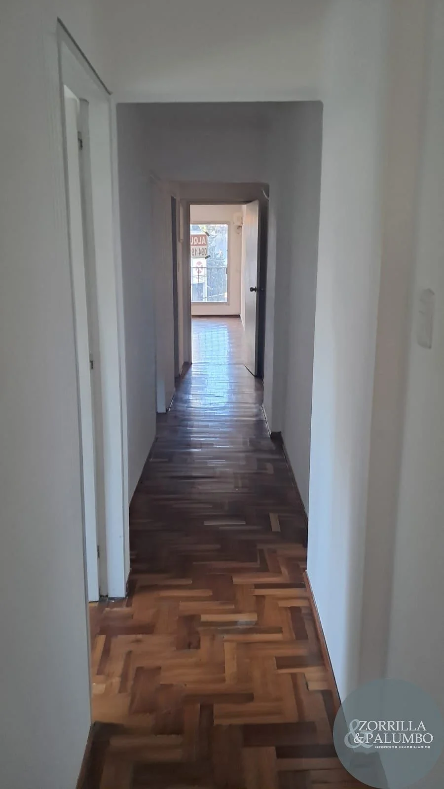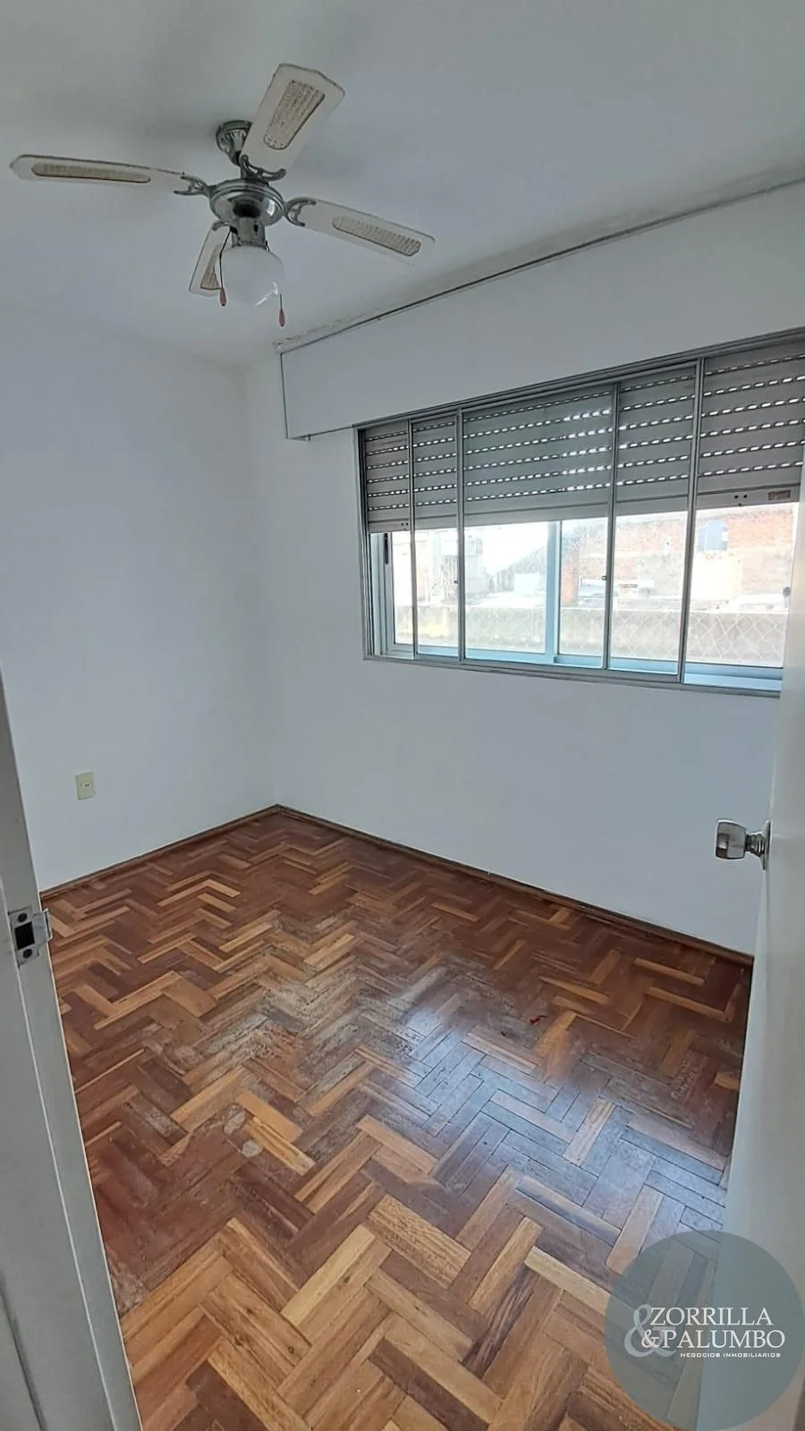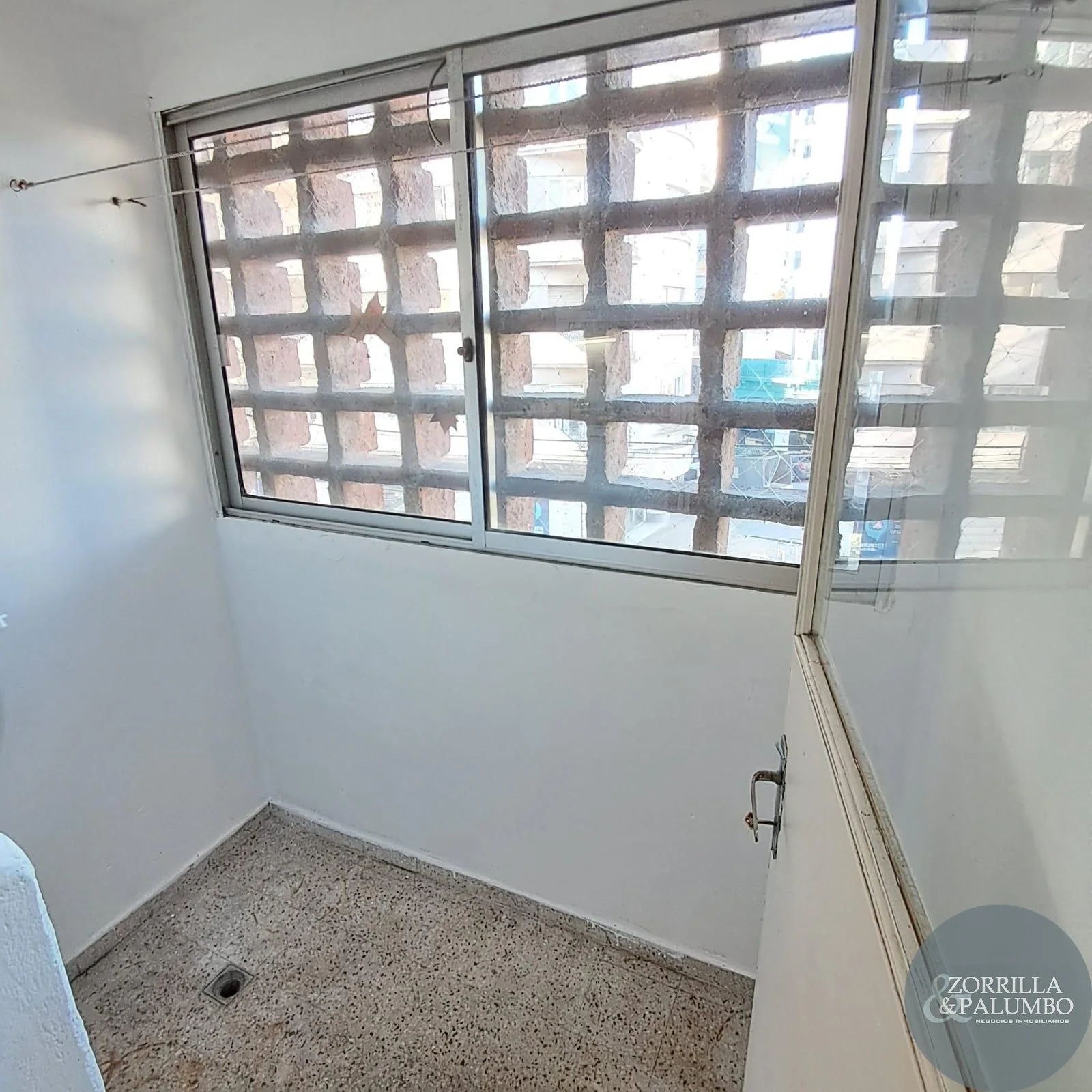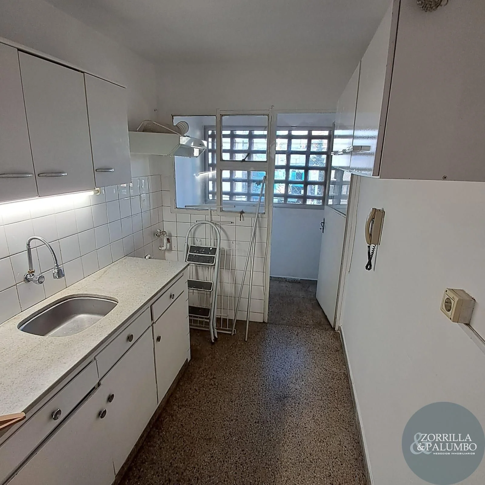 El apartamento se compone de tres dormitorios que dan hacia el contrafrente del edificio, cada uno equipado con doble ventana, persiana y tendedero. El dormitorio matrimonial es de buenas dimensiones y cuenta con placar y aire acondicionado. El primer dormitorio secundario, el más pequeño, es ideal para colocar una cama con mesa de luz y ropero, y también puede ser utilizado como oficina. Al fondo, se encuentra el segundo dormitorio secundario, más espacioso, que permite acomodar perfectamente dos camas individuales o una matrimonial, junto con un ropero. El edificio ofrece la comodidad de dos ascensores y aunque la unidad no cuenta con garaje, se pueden alquilar espacios en dos parkings cercanos a la propiedad.