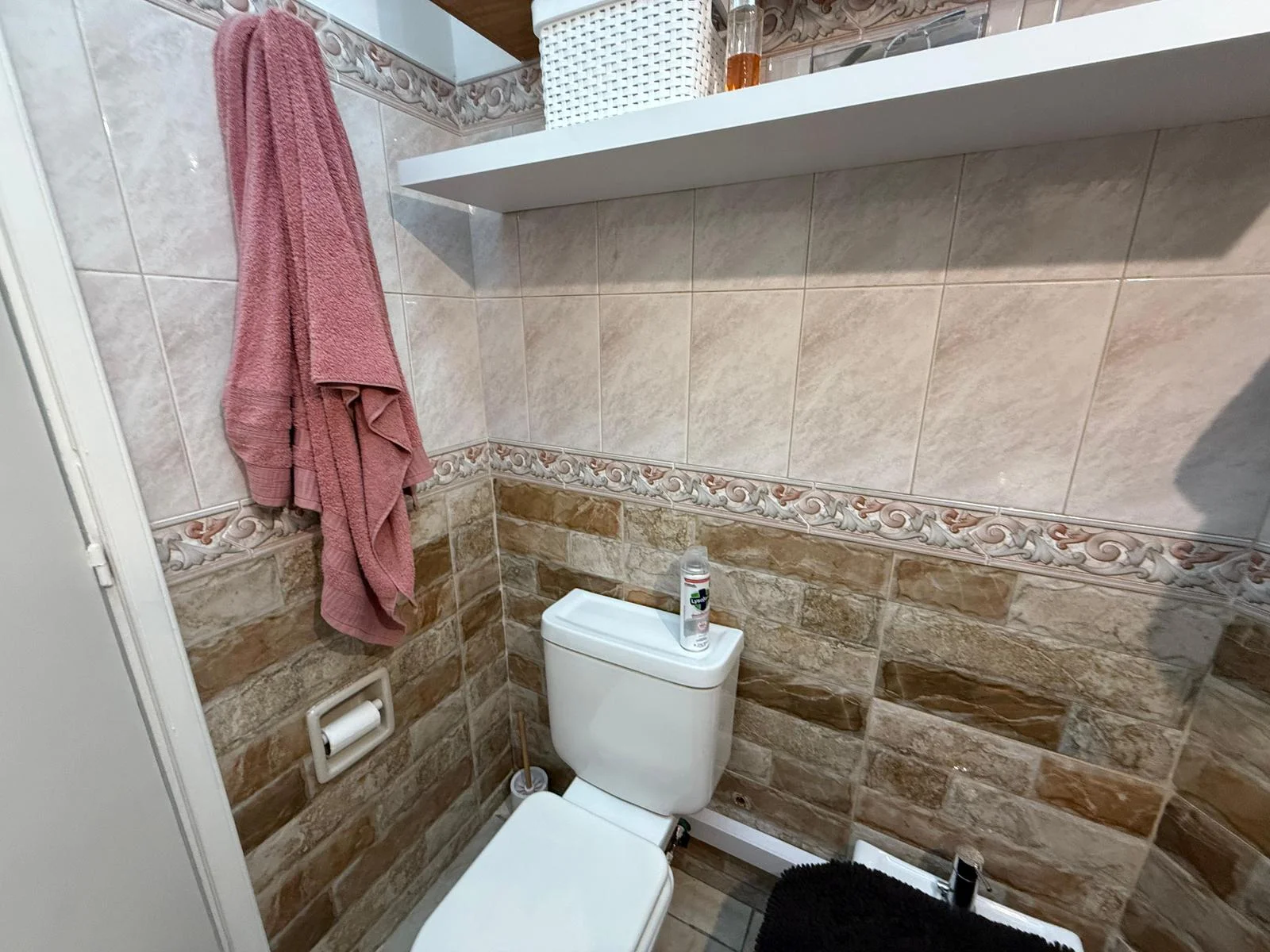 Baño con loza de última generación marca Ferrum, grifería nueva de estilo monocomando, instalación en lavatorio, bidet y ducha para agua fría y caliente, mueble aéreo multiuso. Piso y paredes de cerámica de excelente calidad y estado. Ventana claraboya con reja y abertura de aluminio.