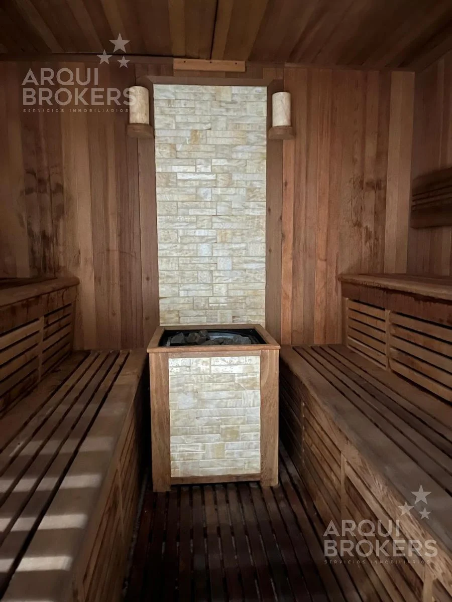 Amenities: solárium, canal de nado climatizado, biblioteca, gimnasio, bicicletas, piscina descubierta, jacuzzi, parrillero, sauna y seguridad.