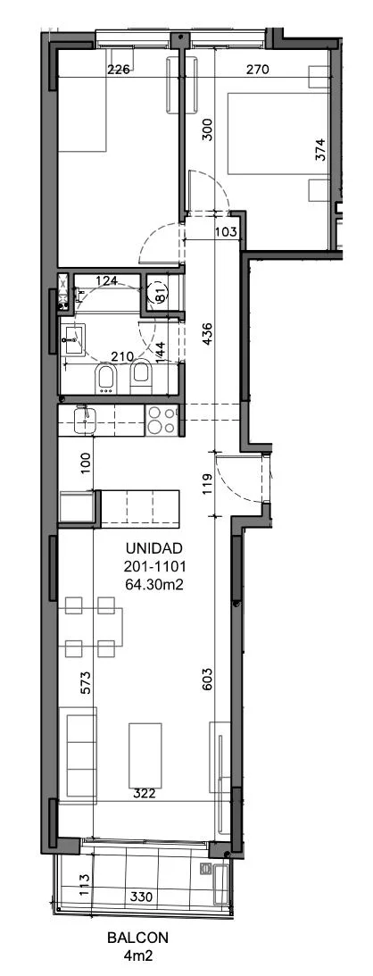 Se proyecta en 13 niveles con 32 unidades, 21 apartamentos de 1 dormitorio y 11 de 2 dormitorios.