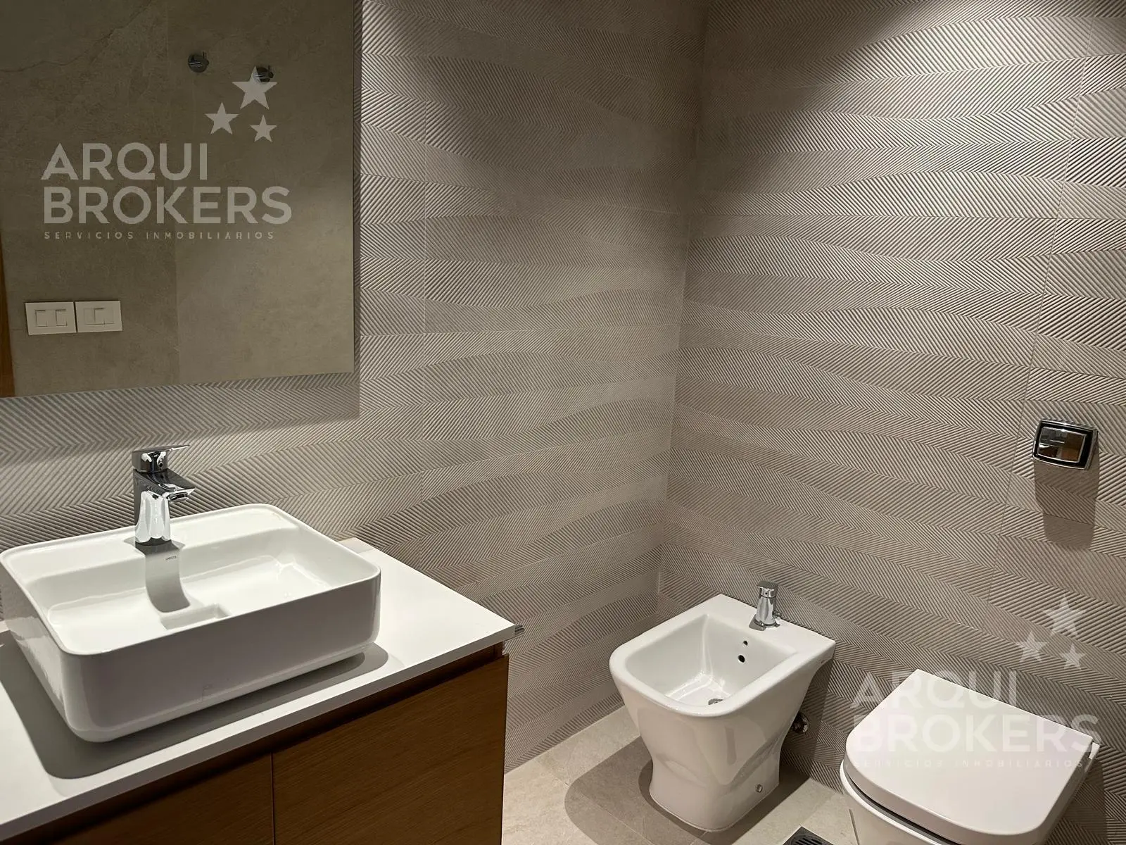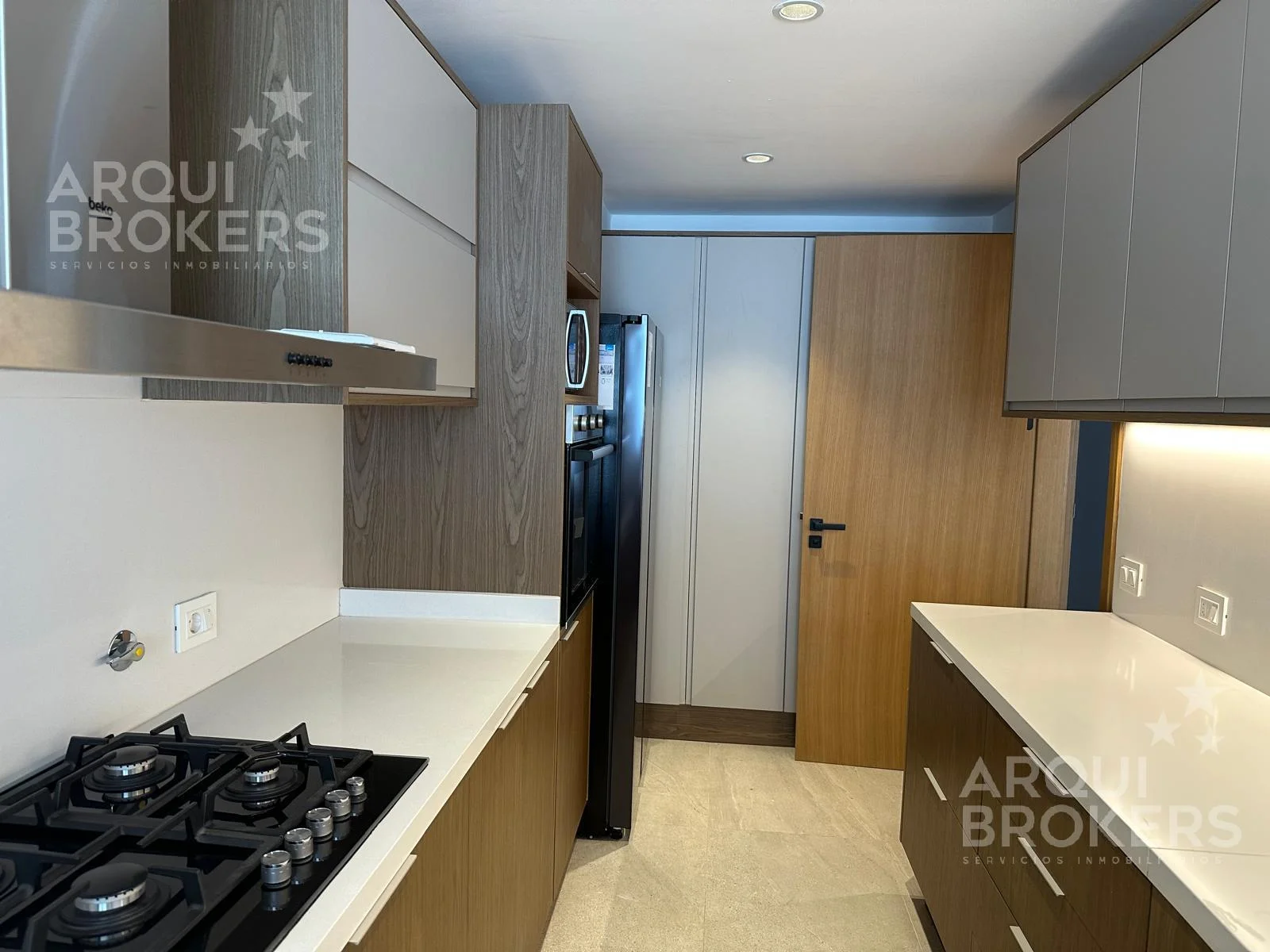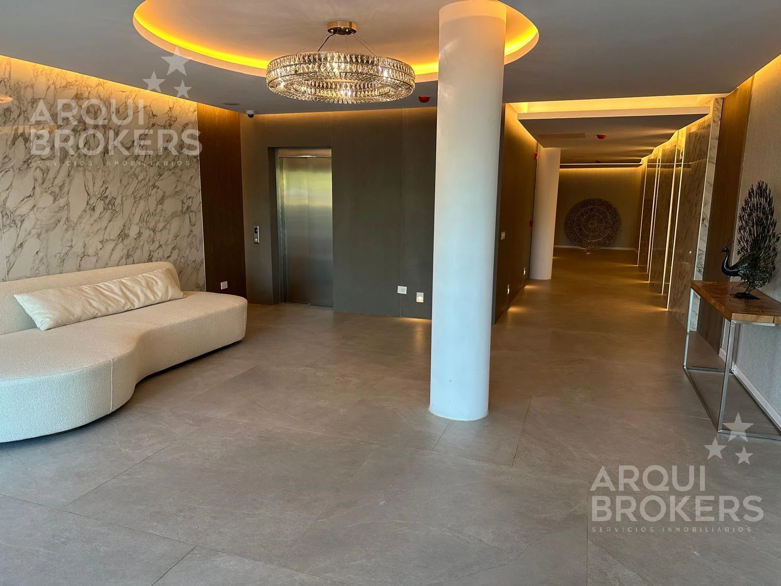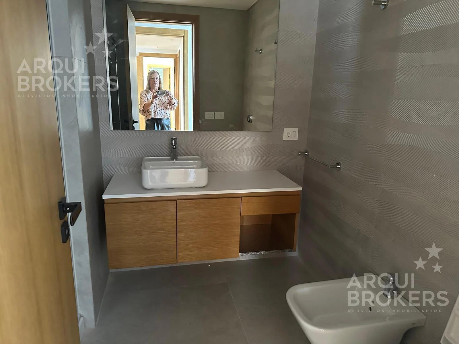 Living comedor con terraza al frente con parrillero, cocina integrada con placares y terraza lavadero, 2 dormitorios en suite, 1 con vestidor, 2 baños completos. Cuenta con garaje y bahulera. Además cuenta con rooftop en planta alta de 208m2.