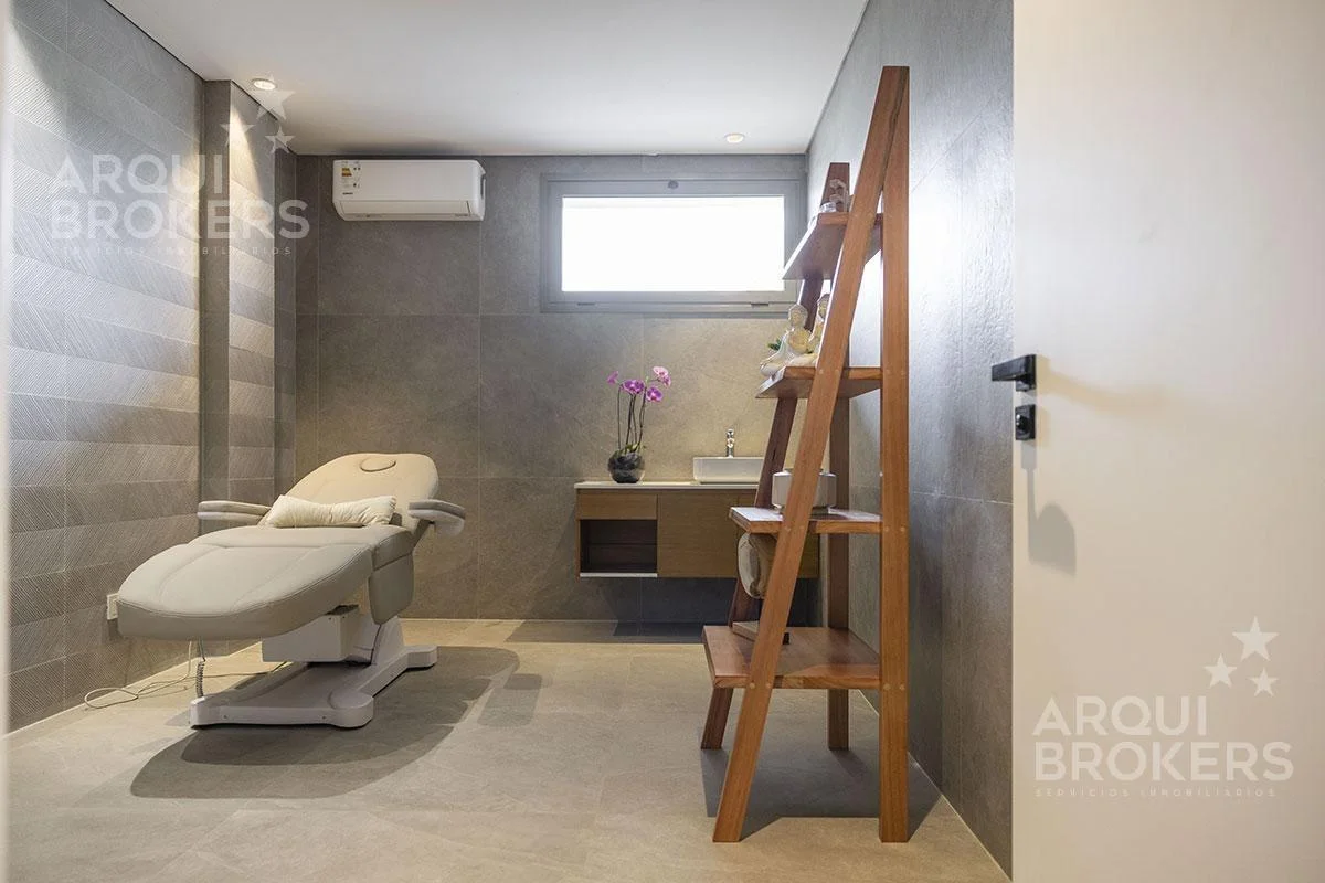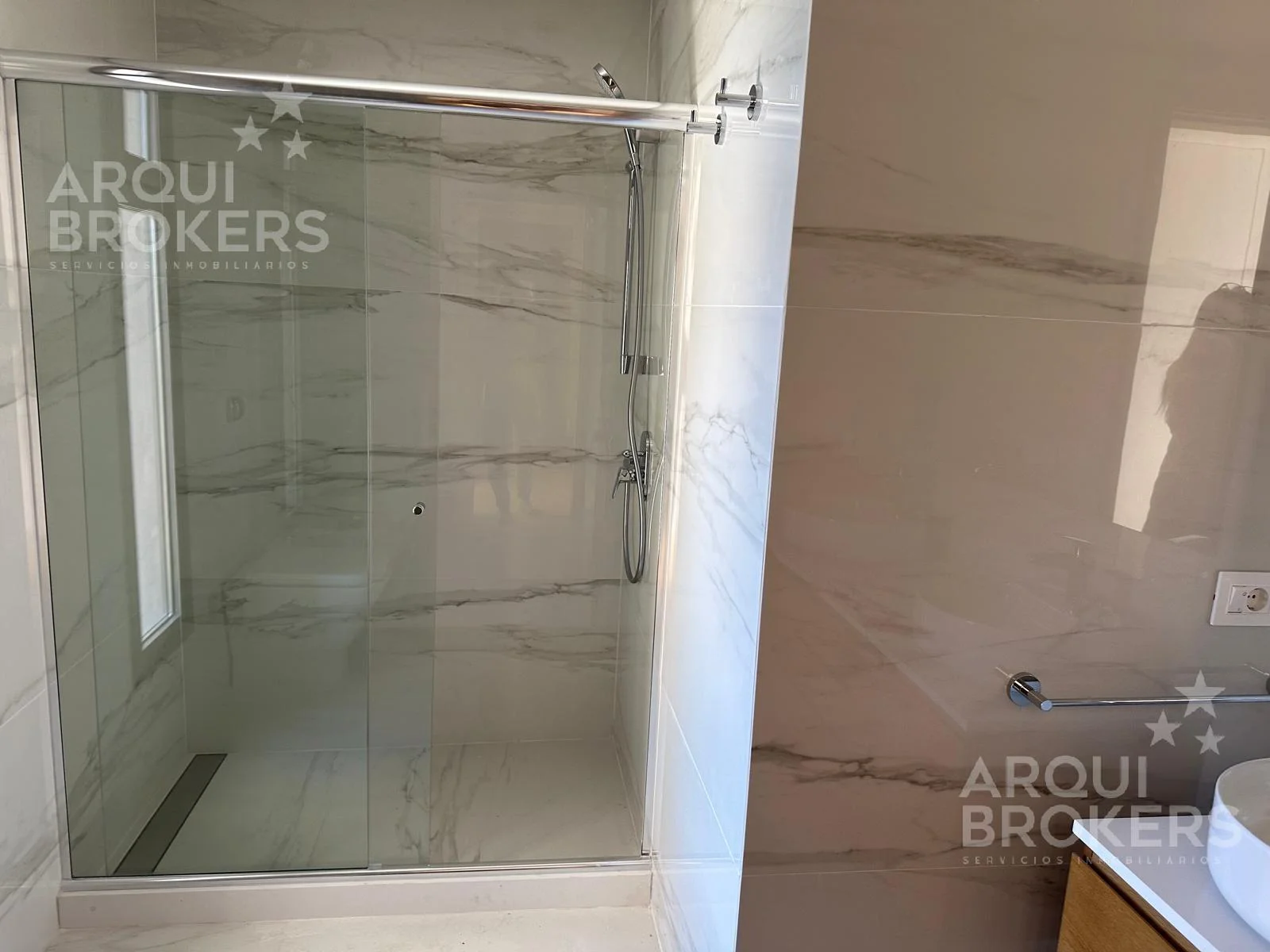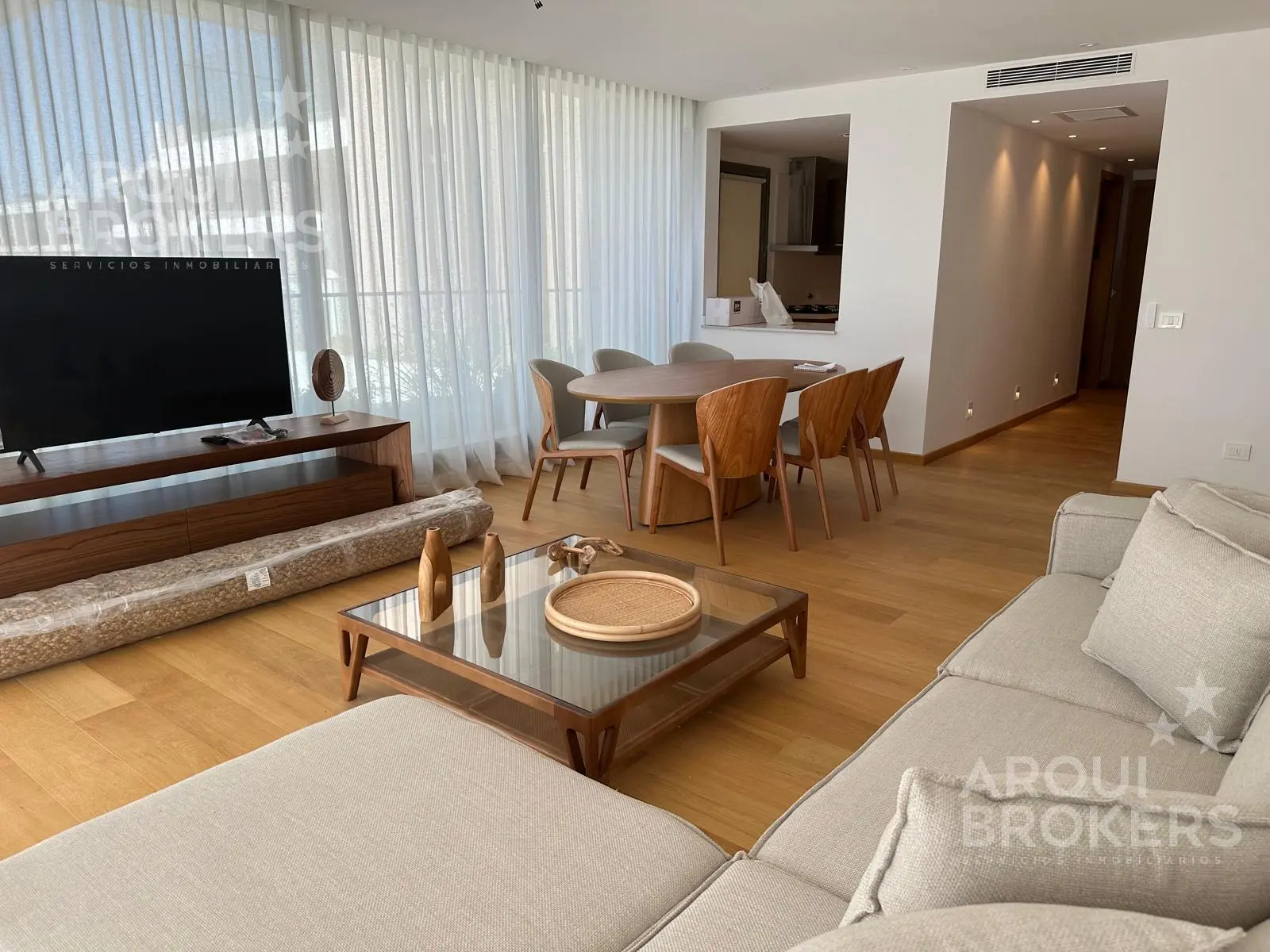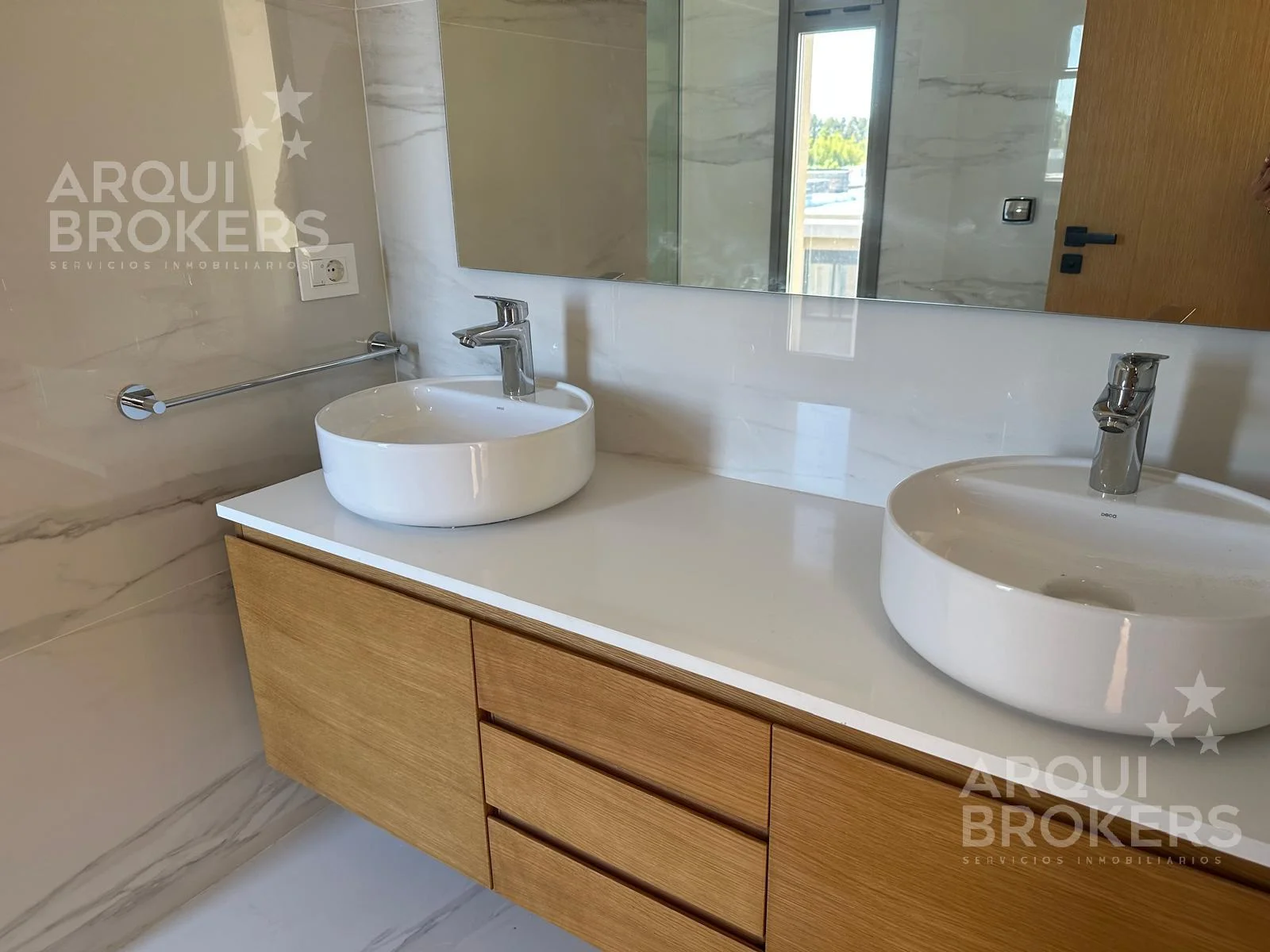 Living comedor con terraza al frente con parrillero, cocina integrada con placares y terraza lavadero, 2 dormitorios en suite, 1 con vestidor, 2 baños completos. Cuenta con garaje y bahulera. Además cuenta con rooftop en planta alta de 208m2.