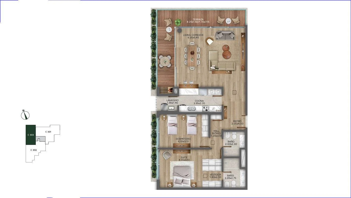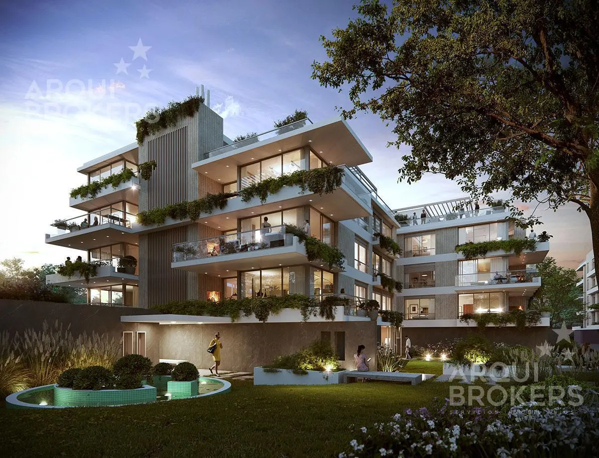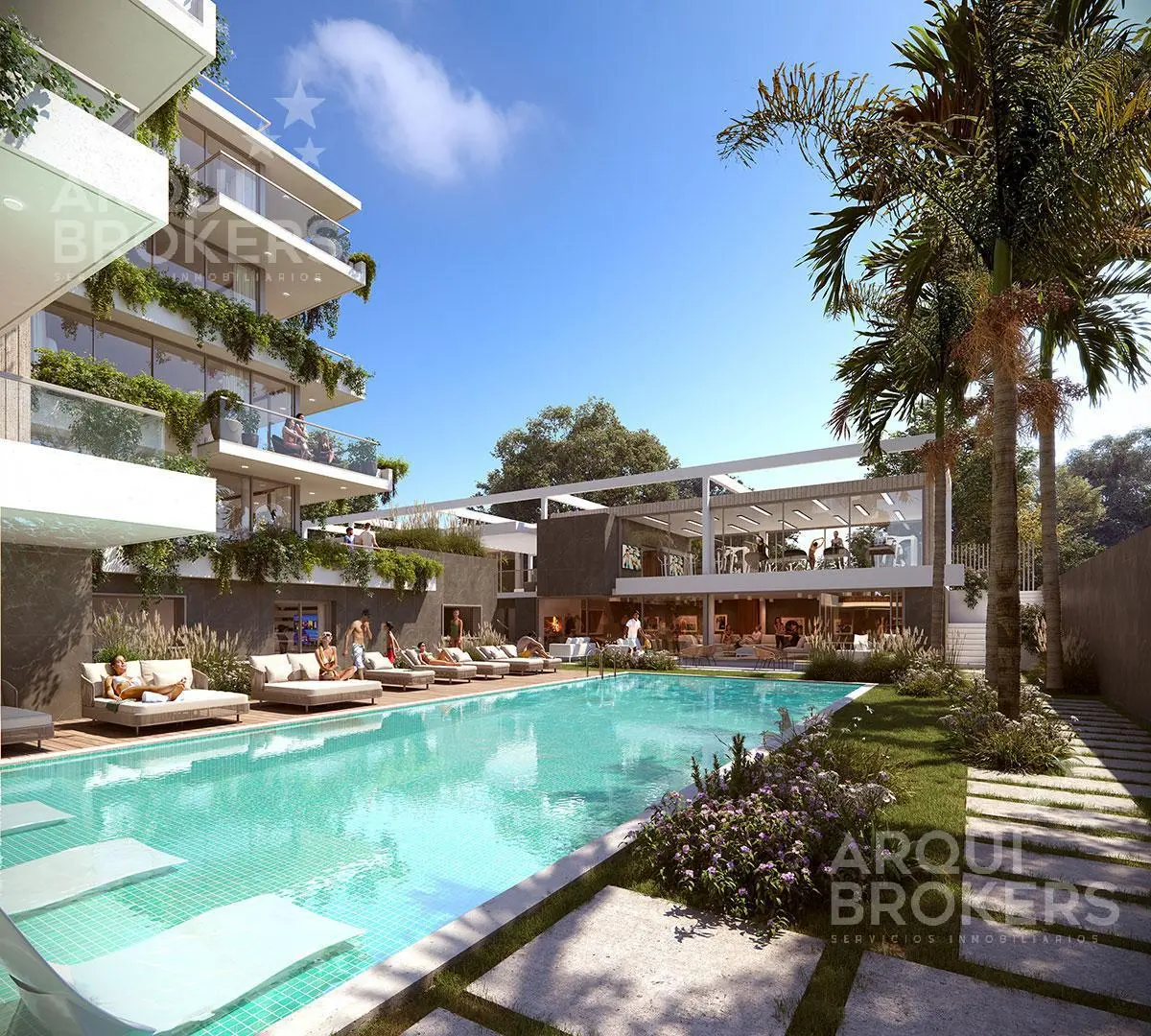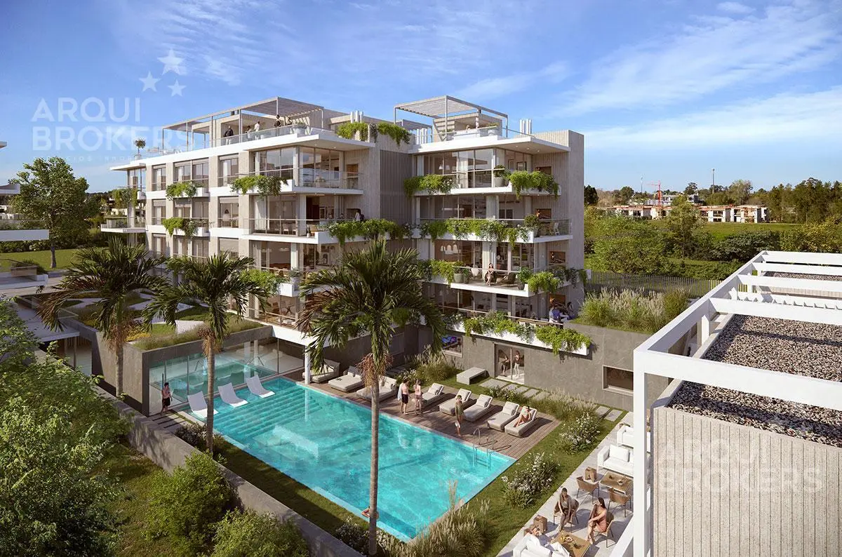 Living comedor con terraza al frente con parrillero, cocina integrada con placares y terraza lavadero, 2 dormitorios en suite, 1 con vestidor, 2 baños completos. Cuenta con garaje y bahulera. Además cuenta con rooftop en planta alta de 208m2.