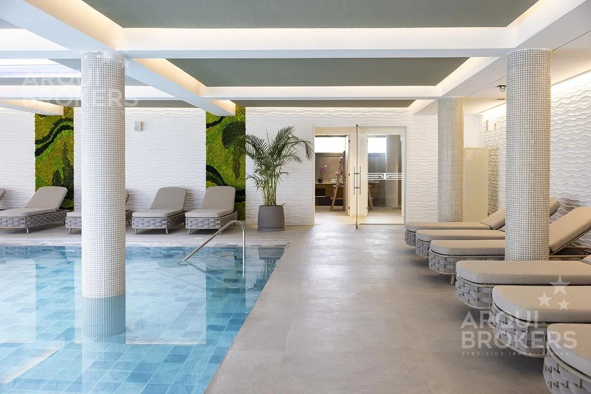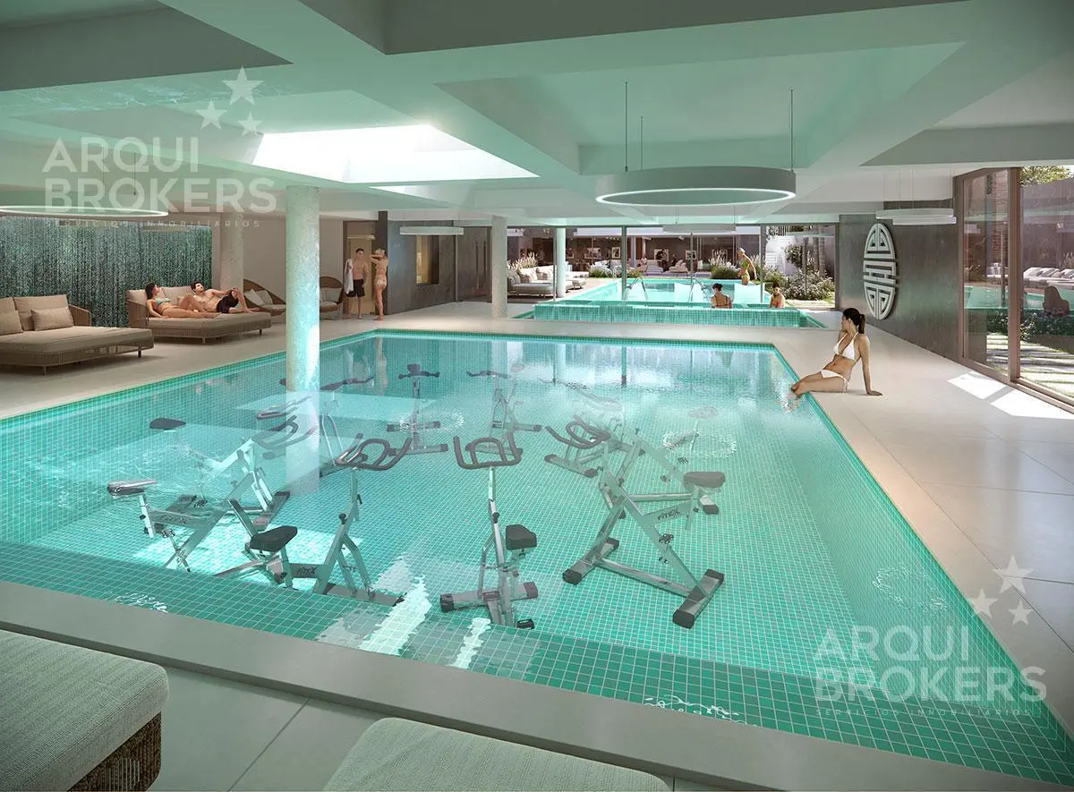 Piscina interior de 8 x 8 mts., hidromasaje de 4.30 x 5 mts., circuito de hidroterapia terapéutico, sala de masajes, sauna seco, sala de gimnasia,