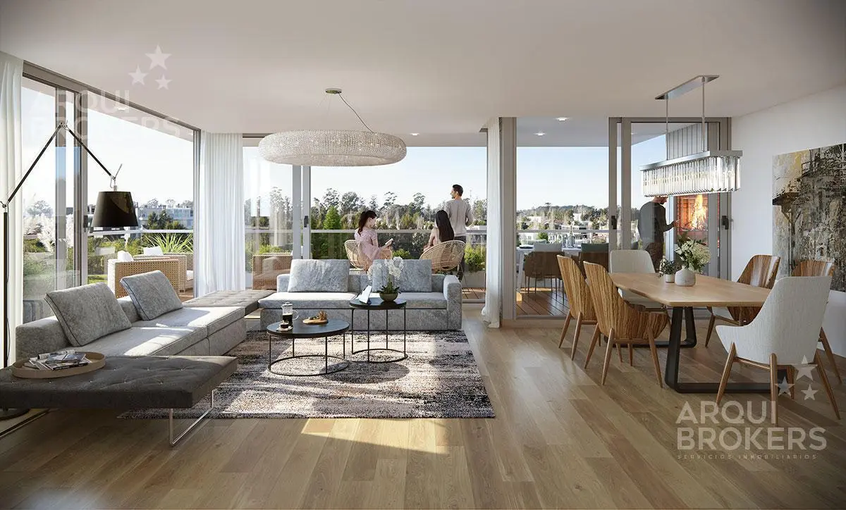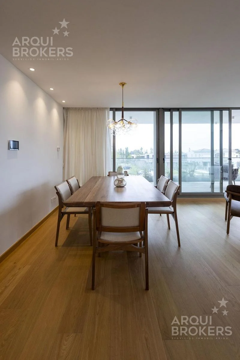 Living comedor con terraza al frente con parrillero, cocina definida con placares y terraza lavadero, 3 dormitorios en suite, 2 con vestidor, 3 baños completos y 1 baño social. Cuenta con garaje y bahulera.