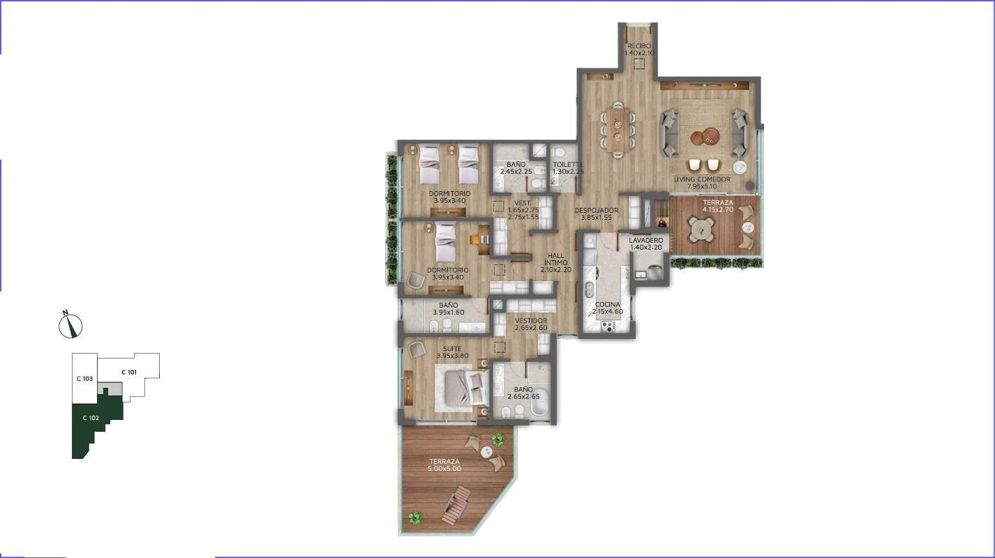Piso 2 torre C con orientación oeste.