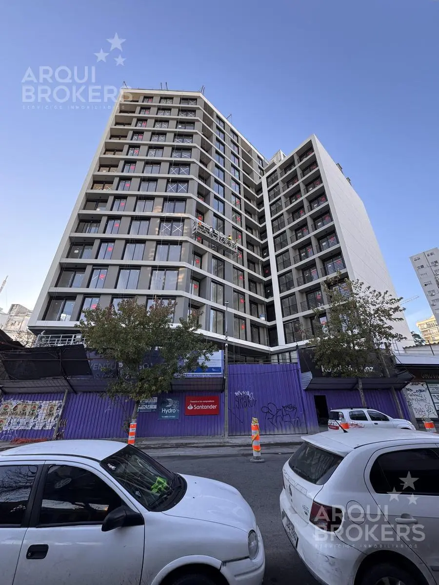 Living comedor con terraza, cocina integrada con placares aéreo y bajo mesada, mesada de cuarzo, extractor de aire, 2 dormitorios y 1 baño completo con amplio espejo, extractor de vapor y pisos de porcelanato.