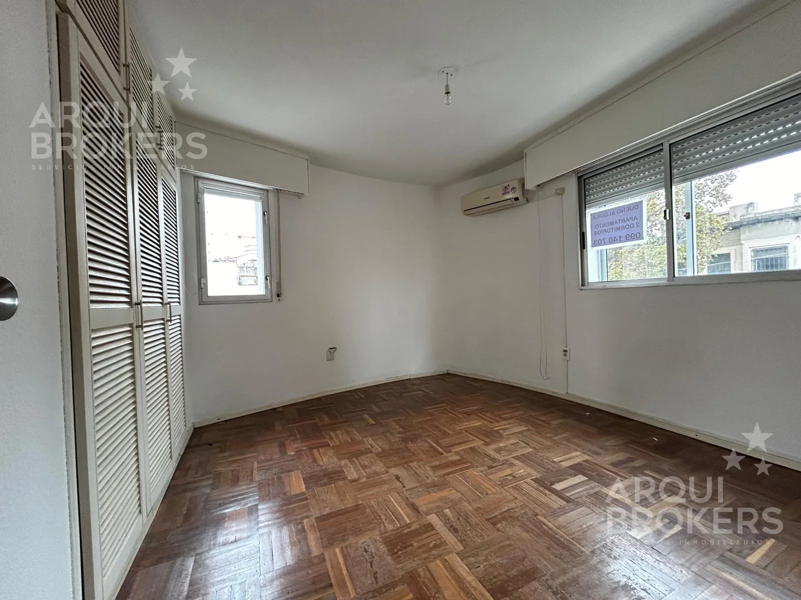 SE ALQUILA apartamento de 2 dormitorios el frente MUY LUMINOSO, EN ESQUINA. Piso 2 por ascensor.Cuenta con 2 dormitorios de cómodas dimensiones con placares empotrados , pisos de parquet y aires acondicionados.