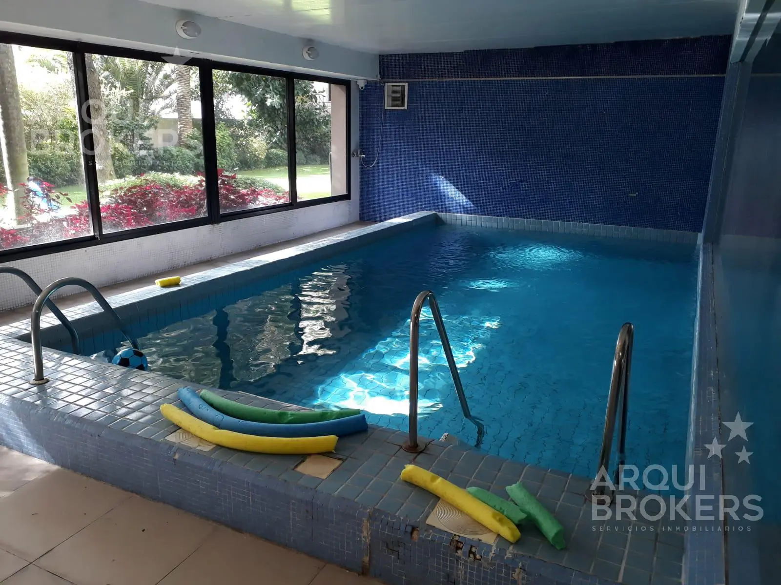El edificio cuenta con piscina climatizada, gimnasio y parque para niños.