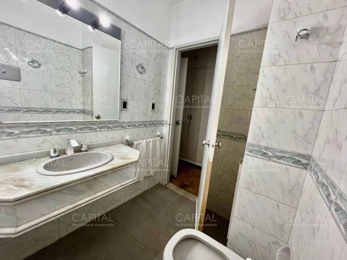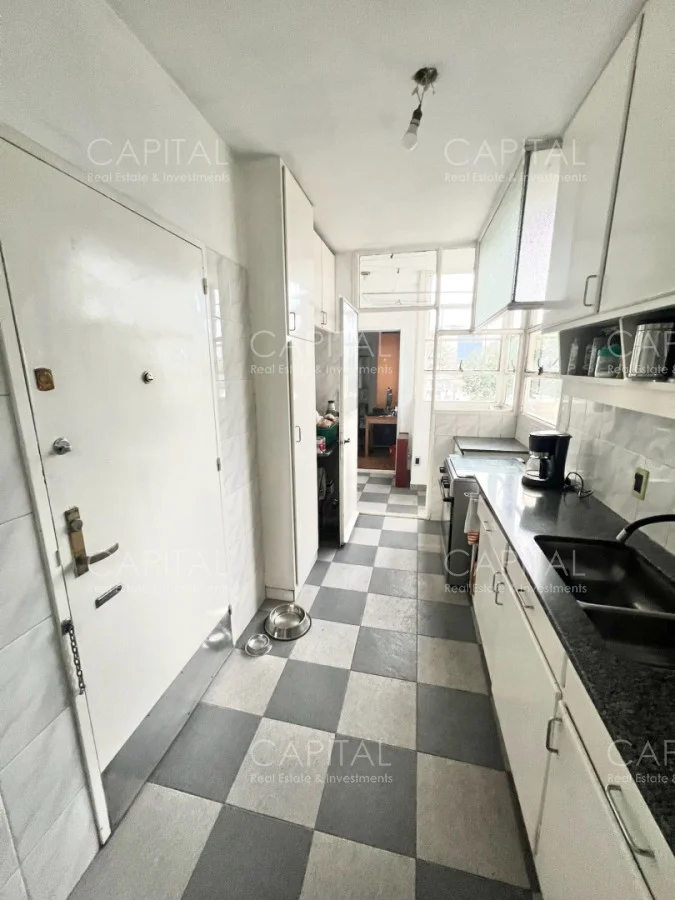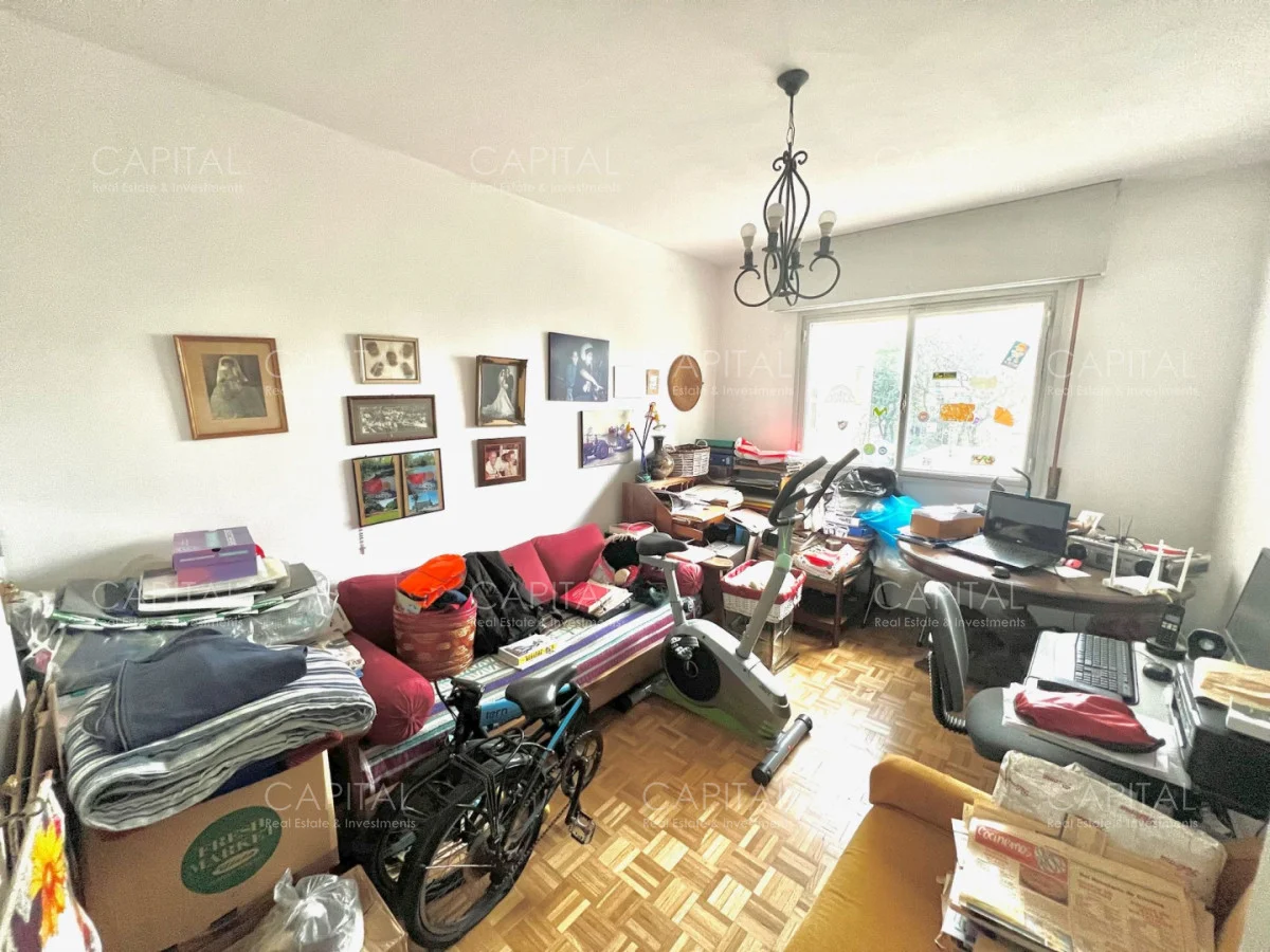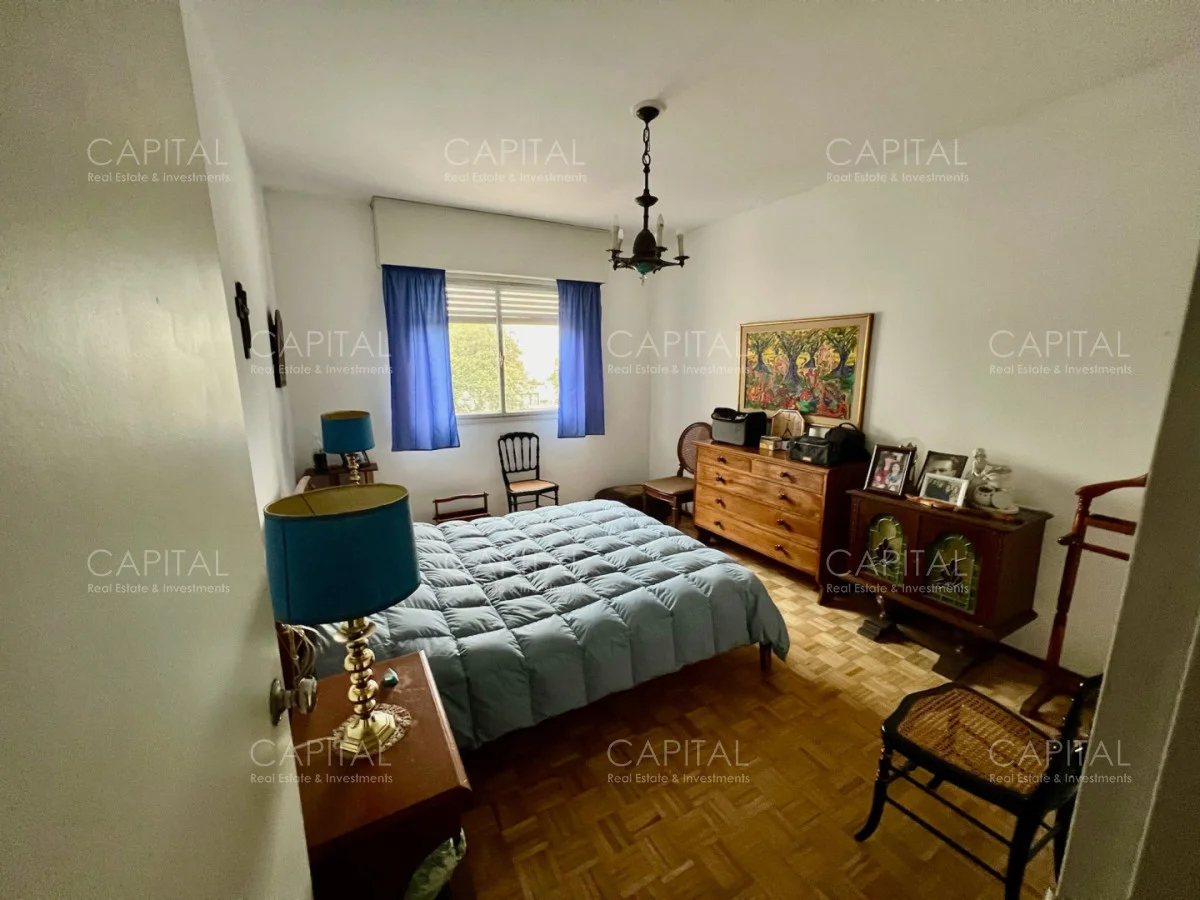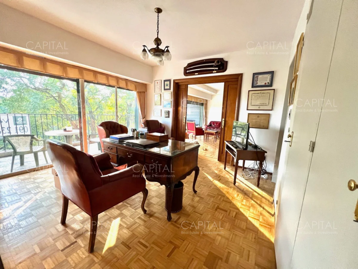 Apartamento con algunas remodelaciones, especialmente en los baños, consta de un amplio living comedor muy luminoso y acogedor con grandes ventanales con persianas eléctricas. y salida a cómoda terraza, integrado al living se encuentra el dormitorio principal que actualmente es utilizado como escritorio y se divide mediante una puerta corrediza y cuenta con salida al amplio balcón, dos dormitorios cómodos y luminosos, a contrafrente, con vista despejada y con placares empotrados y dormitorio de servicio: Con baño completo. Cocina independiente con espacio de lavadero y entrada de servicio.