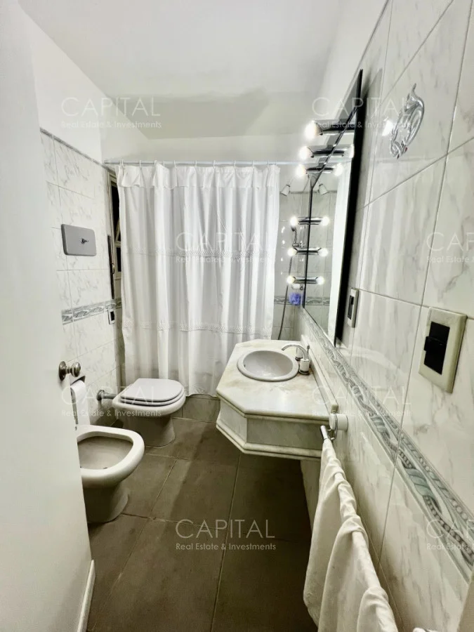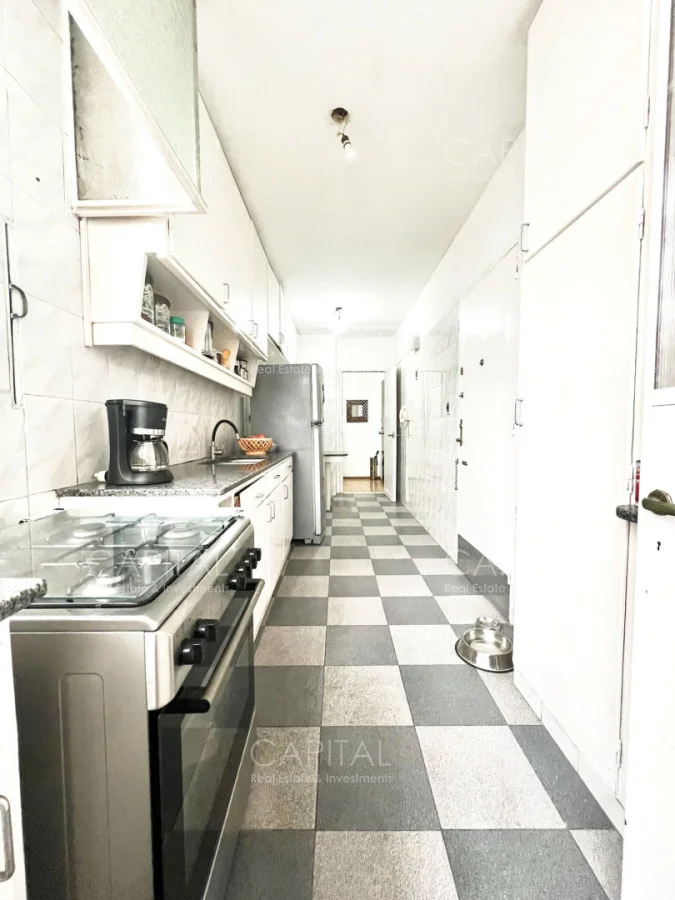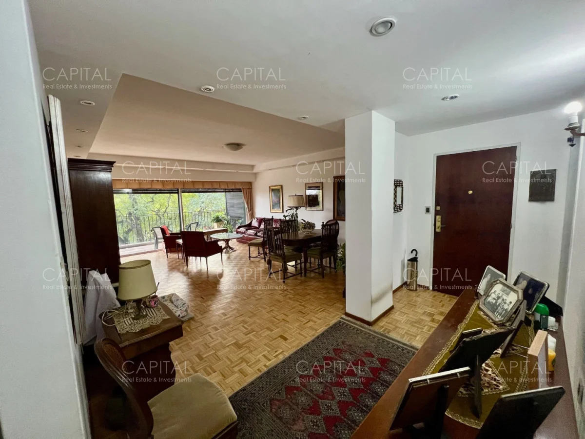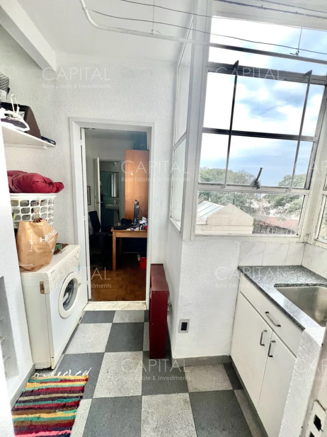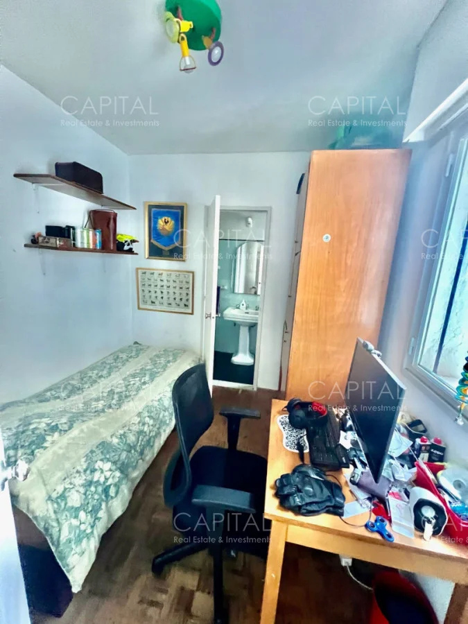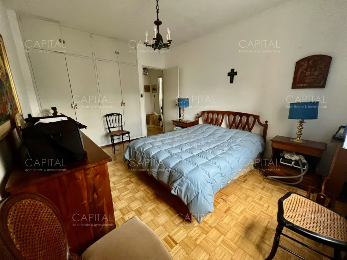 Apartamento con algunas remodelaciones, especialmente en los baños, consta de un amplio living comedor muy luminoso y acogedor con grandes ventanales con persianas eléctricas. y salida a cómoda terraza, integrado al living se encuentra el dormitorio principal que actualmente es utilizado como escritorio y se divide mediante una puerta corrediza y cuenta con salida al amplio balcón, dos dormitorios cómodos y luminosos, a contrafrente, con vista despejada y con placares empotrados y dormitorio de servicio: Con baño completo. Cocina independiente con espacio de lavadero y entrada de servicio.