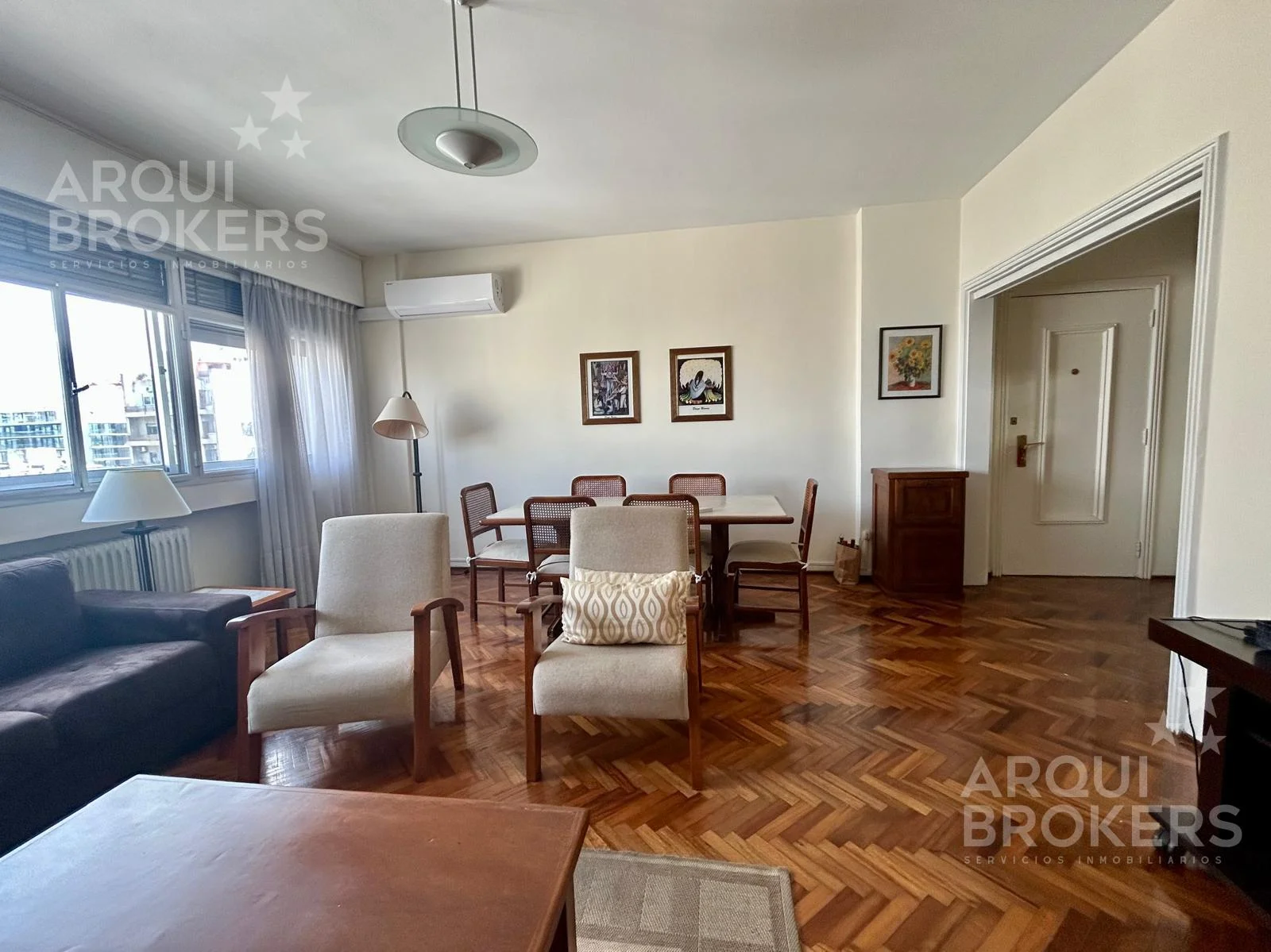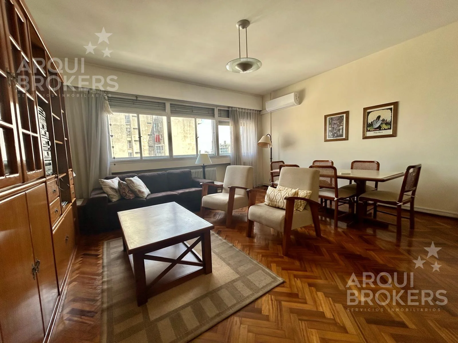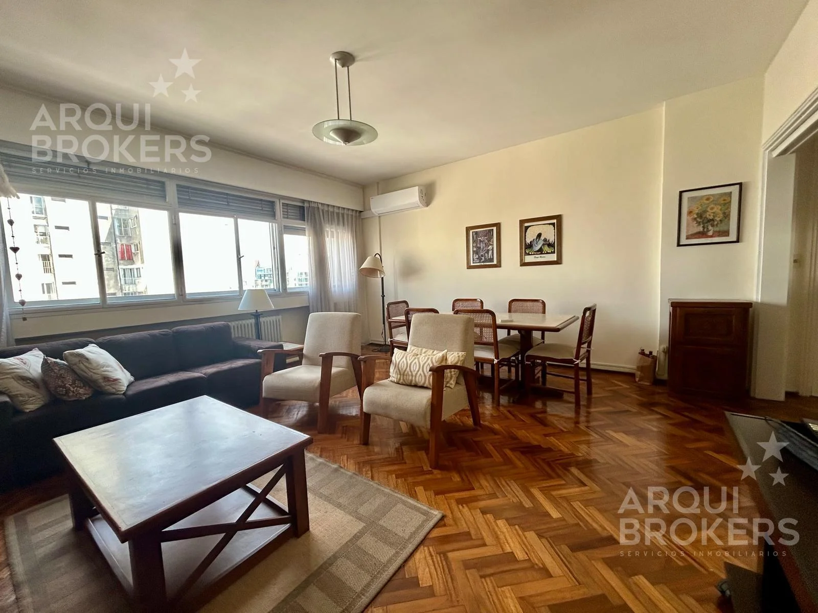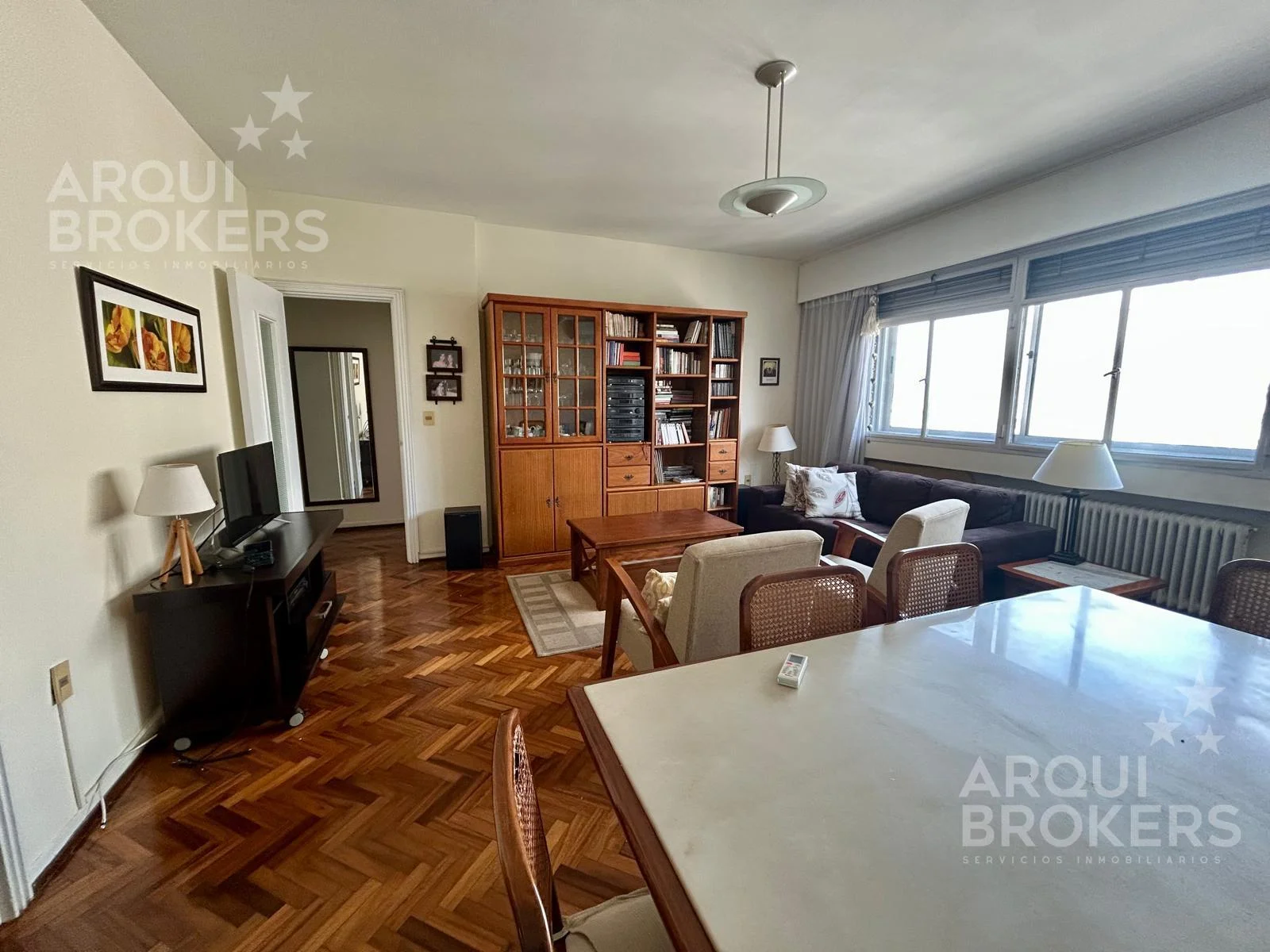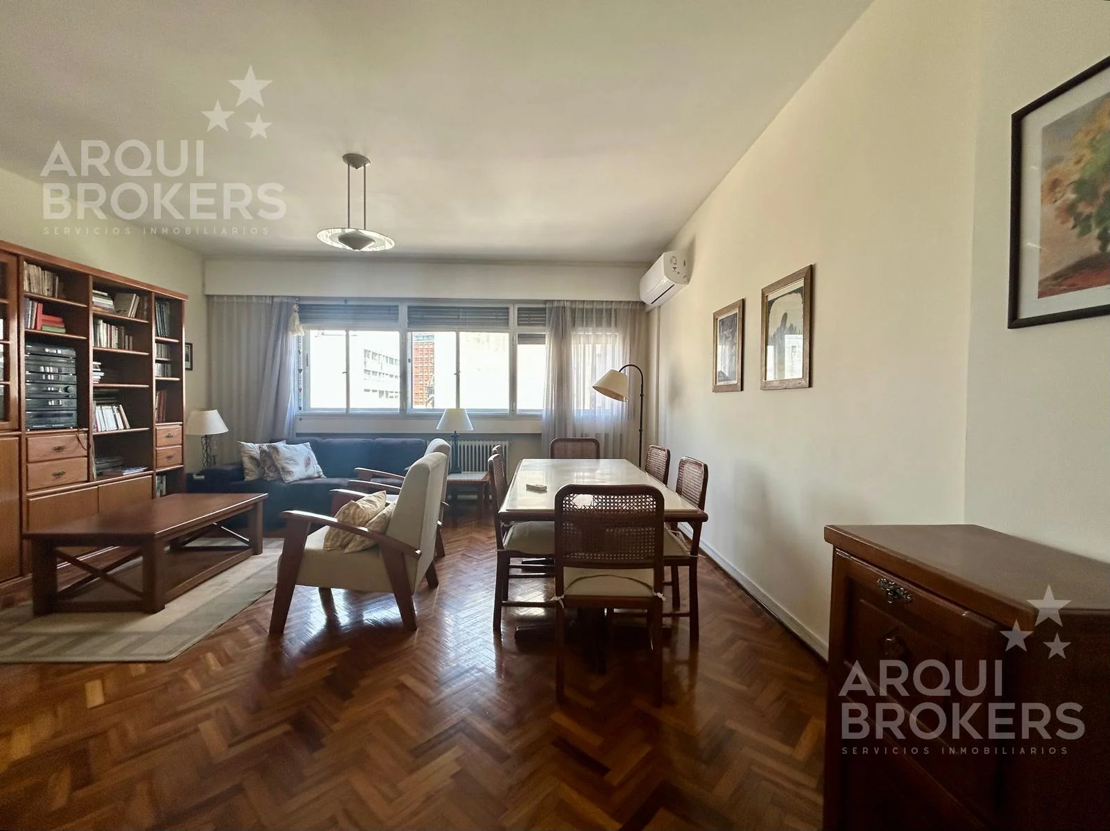 El living-comedor es de gran tamaño con ventanas a la calle Vázquez lo que lo hace muy luminoso. Piso de parquet y radiadores (nuevos) en todos los ambientes.