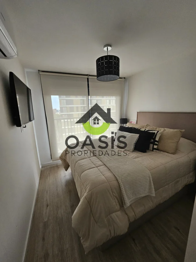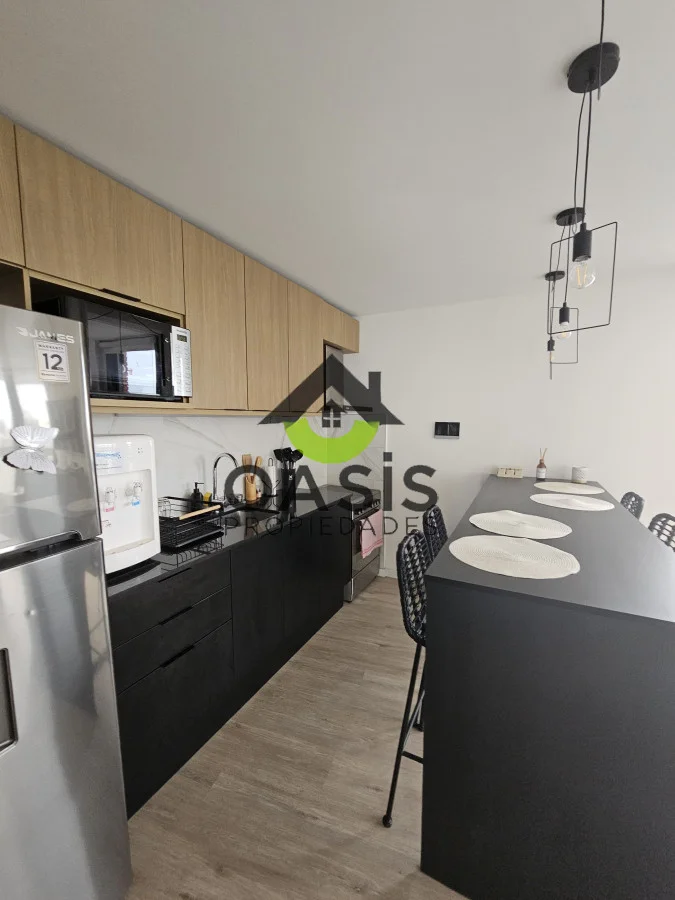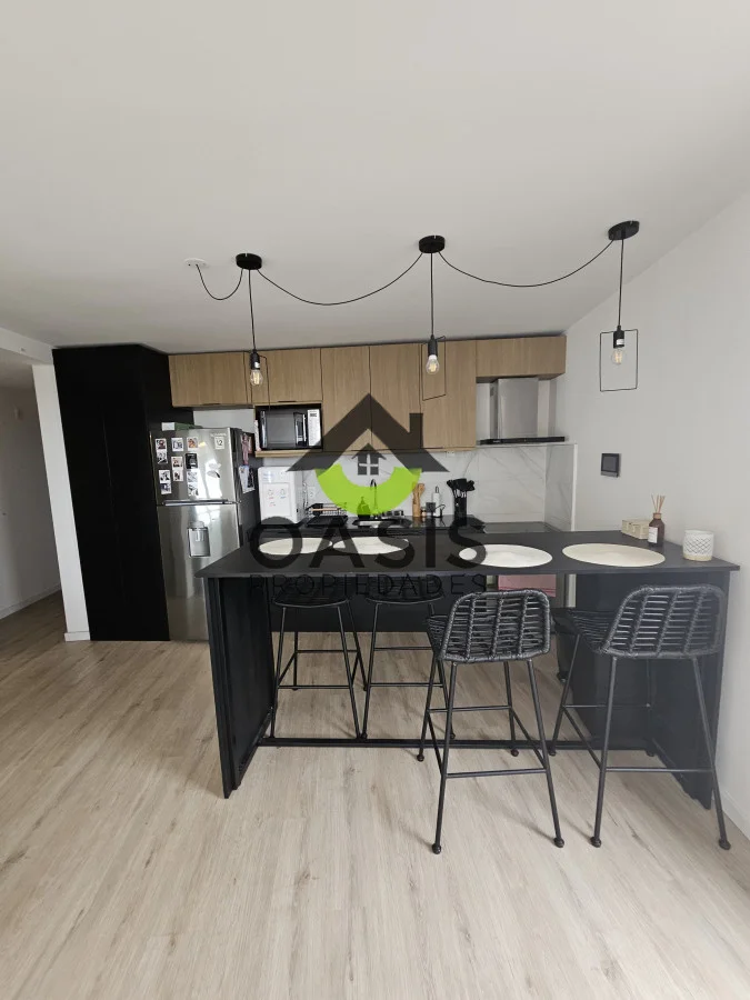 La cocina integrada se presenta como el corazón del hogar, equipada con anafe, horno y campana, ideal para los amantes de la gastronomía. El living, luminoso y espacioso, se convierte en el lugar perfecto para relajarse o recibir a amigos y familiares. Además, el aire acondicionado garantiza un clima agradable durante todo el año.