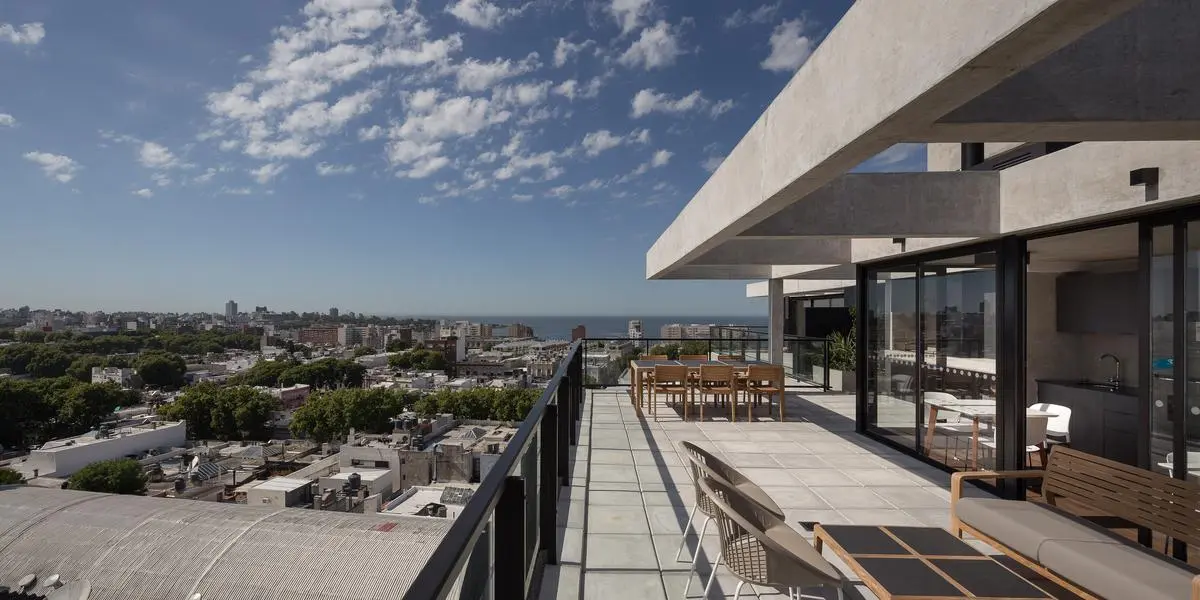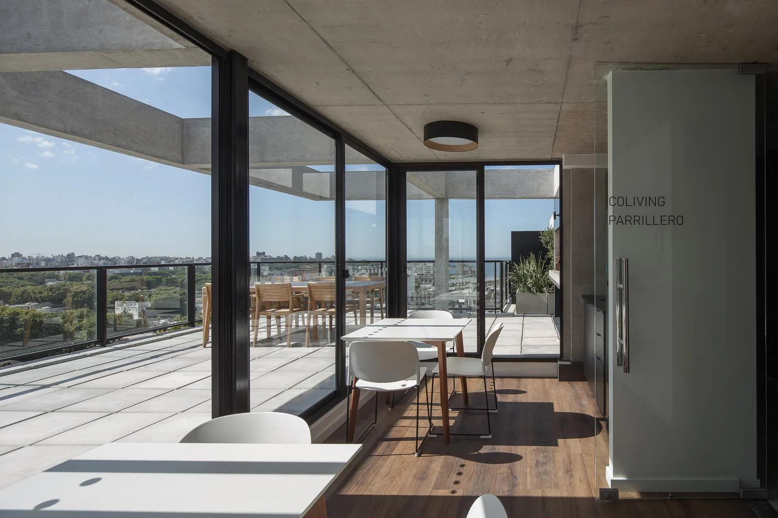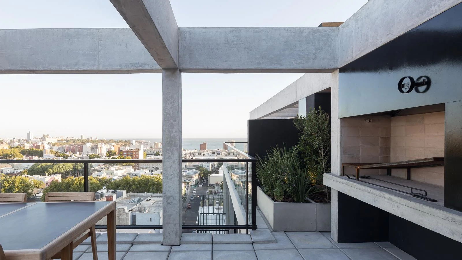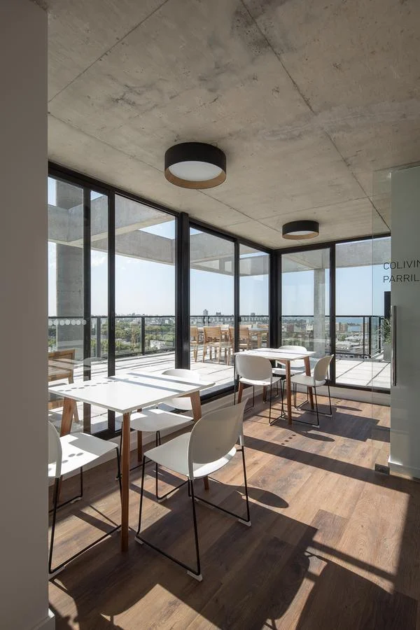 Cuenta con un rooftop, con vista hacia la rambla de Montevideo y su río, parrillero, coliving y laundry.