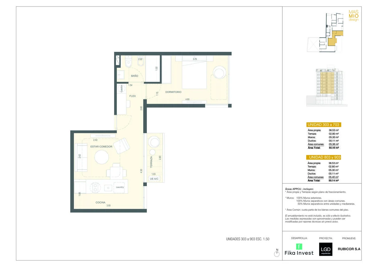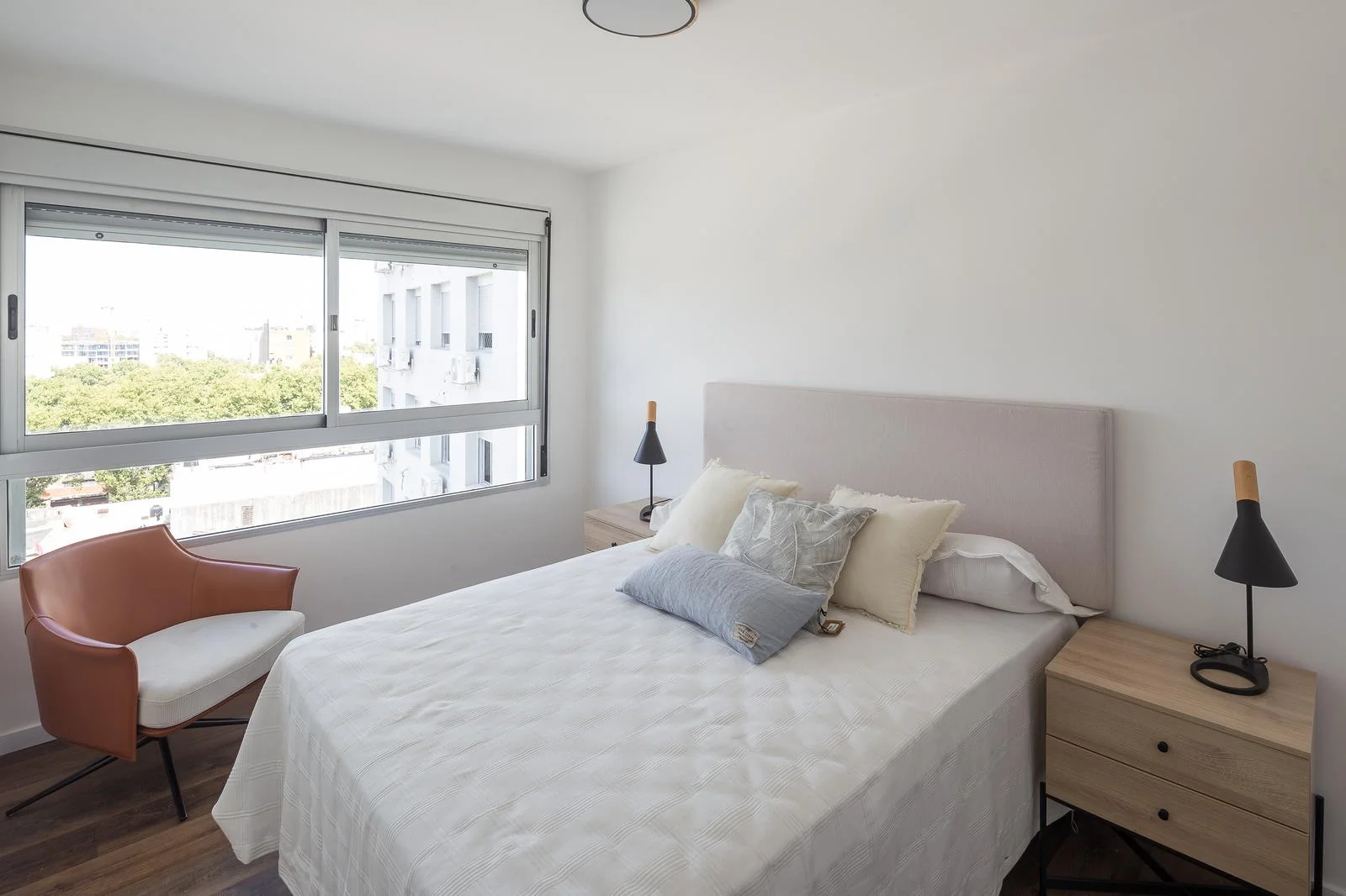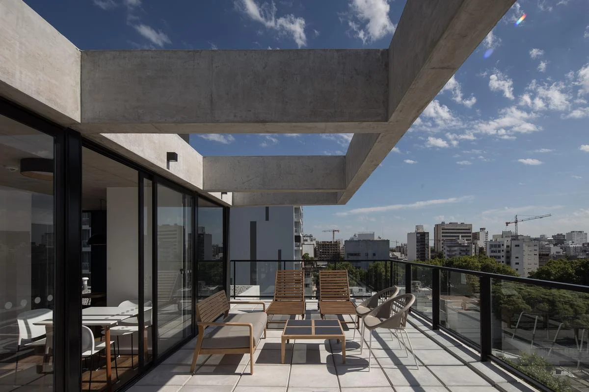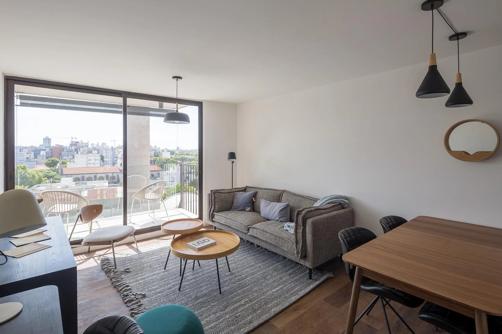 Cuenta con un rooftop, con vista hacia la rambla de Montevideo y su río, parrillero, coliving y laundry.