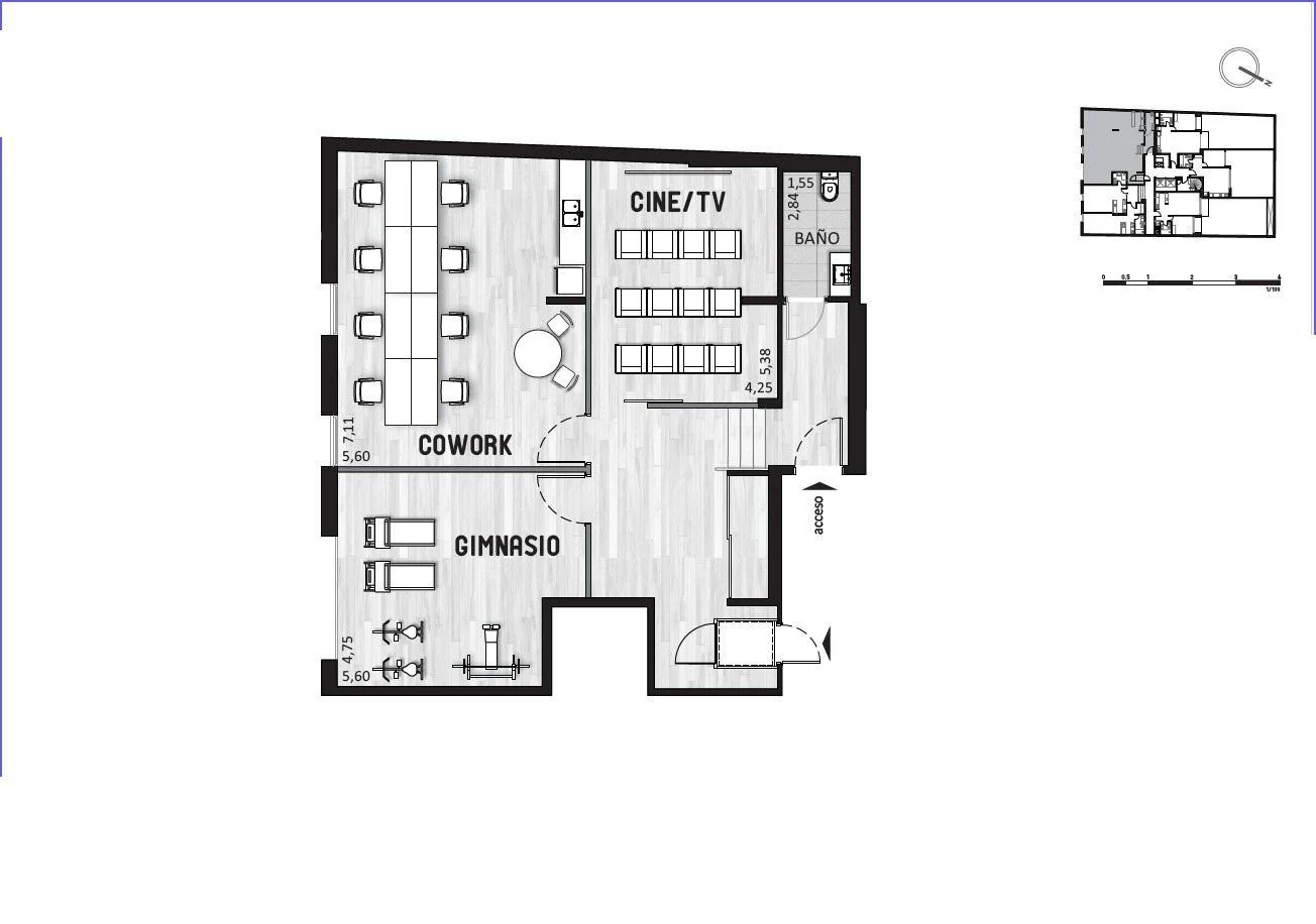 El edificio cuenta con los siguientes amenities: bicicletero, gimnasio, co work, microcine y 2 parrilleros exteriores con vista panoramica.