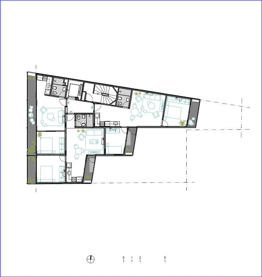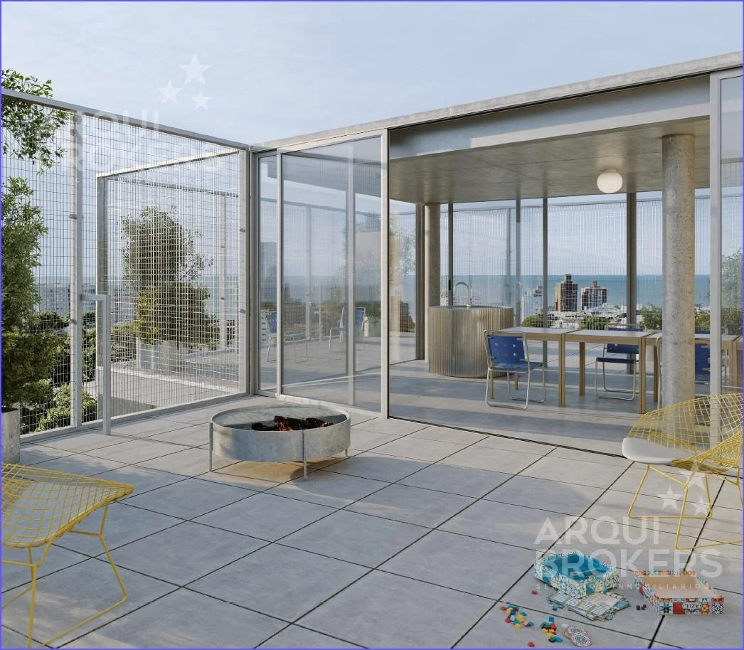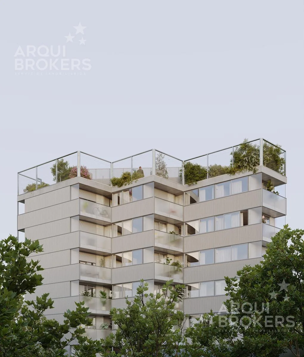 El edificio cuenta en su último piso con un salón común, patios con vegetación, mirador, parrillero, fogonero y laundry.