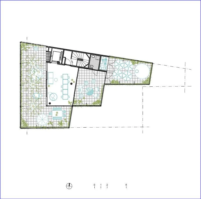 El edificio cuenta en su último piso con un salón común, patios con vegetación, mirador, parrillero, fogonero y laundry.