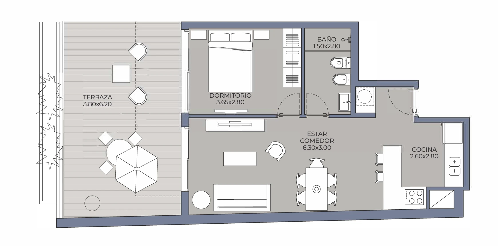 Apartamento 1 Dormitorio 103 A Estrenar En Febrero 2027