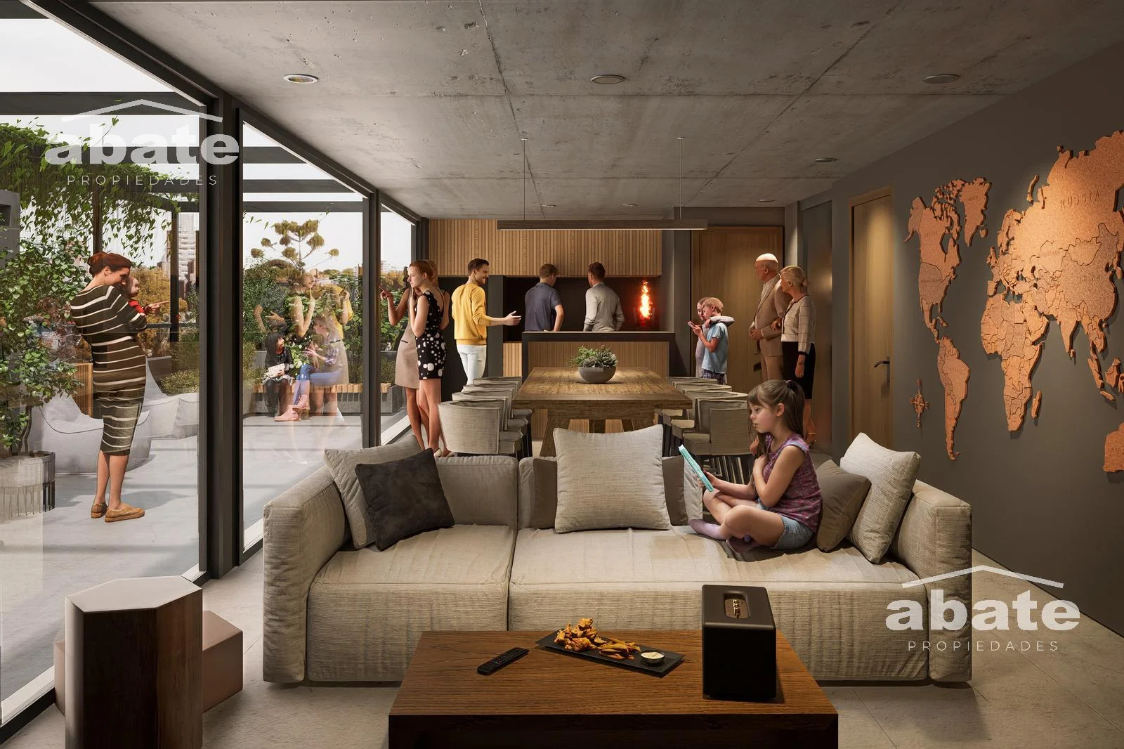 La propuesta se completa con una barbacoa cerrada con terraza lounge en el rooftop del edificio de la Av. 19 de Abril y una terraza pergolada en cada rooftop de los dos que se ubican sobre Avenida Agraciada.