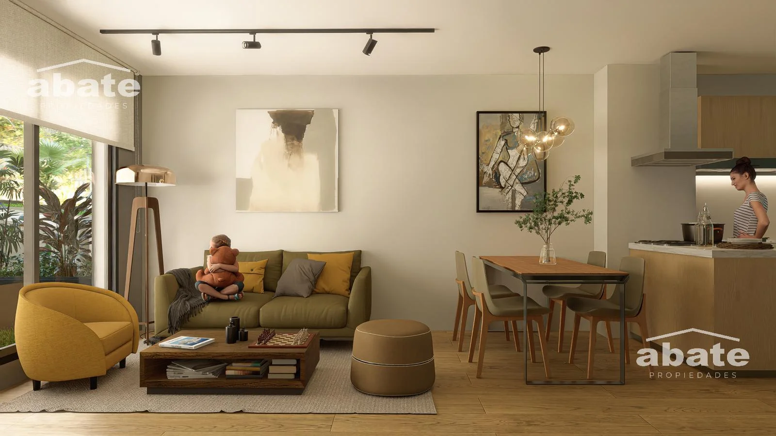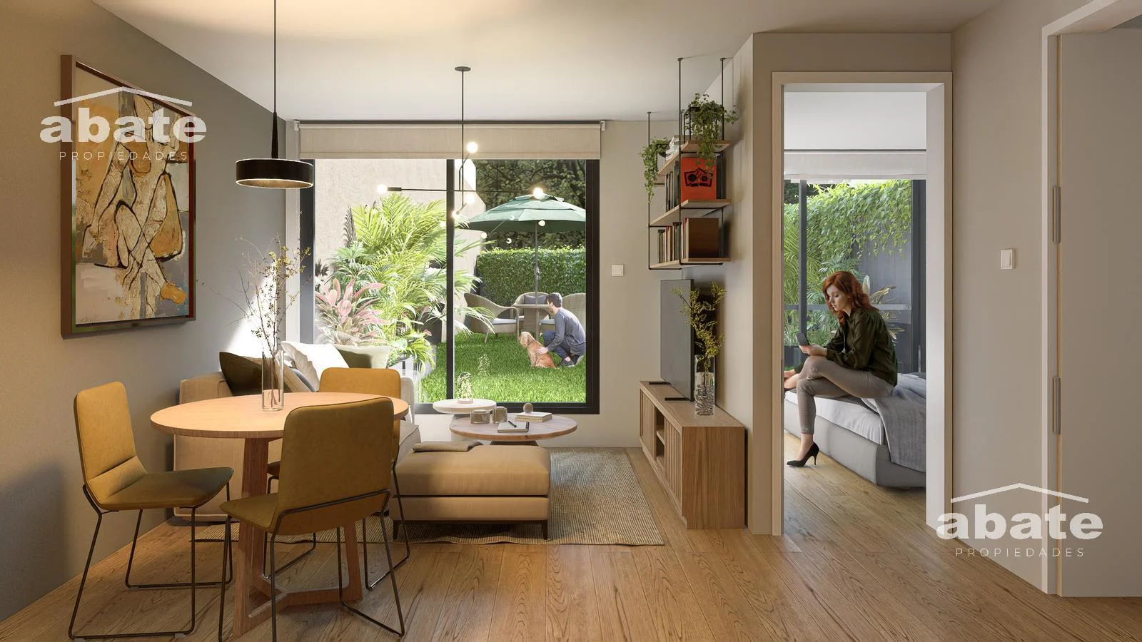 Al ingresar te recibe la cocina integrada, separada del living comedor por una barra desayunadora. Desde el estar se accede a una cómoda terraza con orientación noroeste. 1 baño completo.