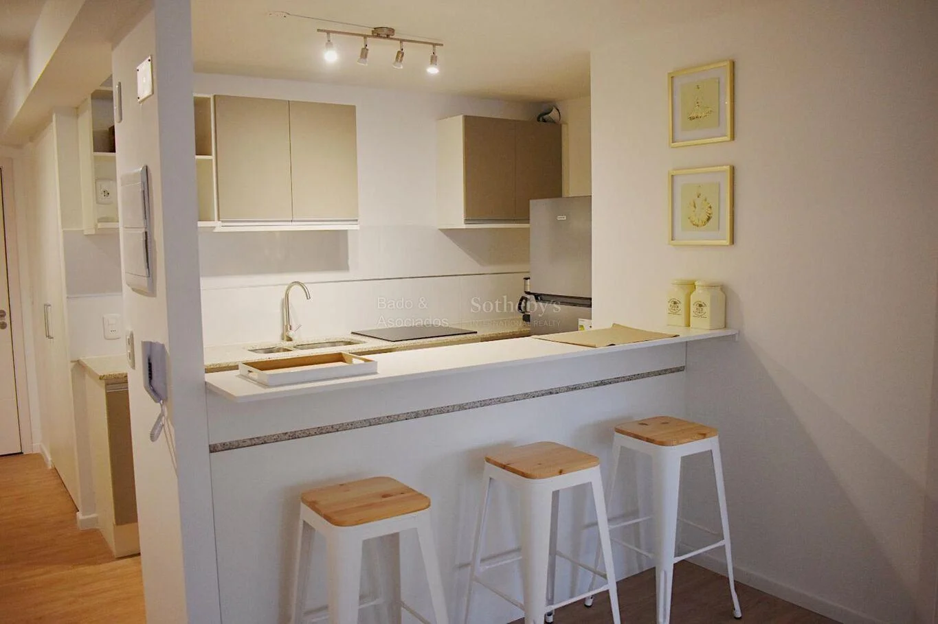 Apartamento de 1 dormitorio contrafrente, con amplia cocina integrada al living comedor. Baño completo. Lavadero en el edificio. Portería presencial y virtual 24 horas.