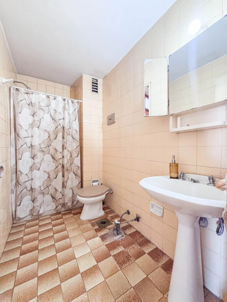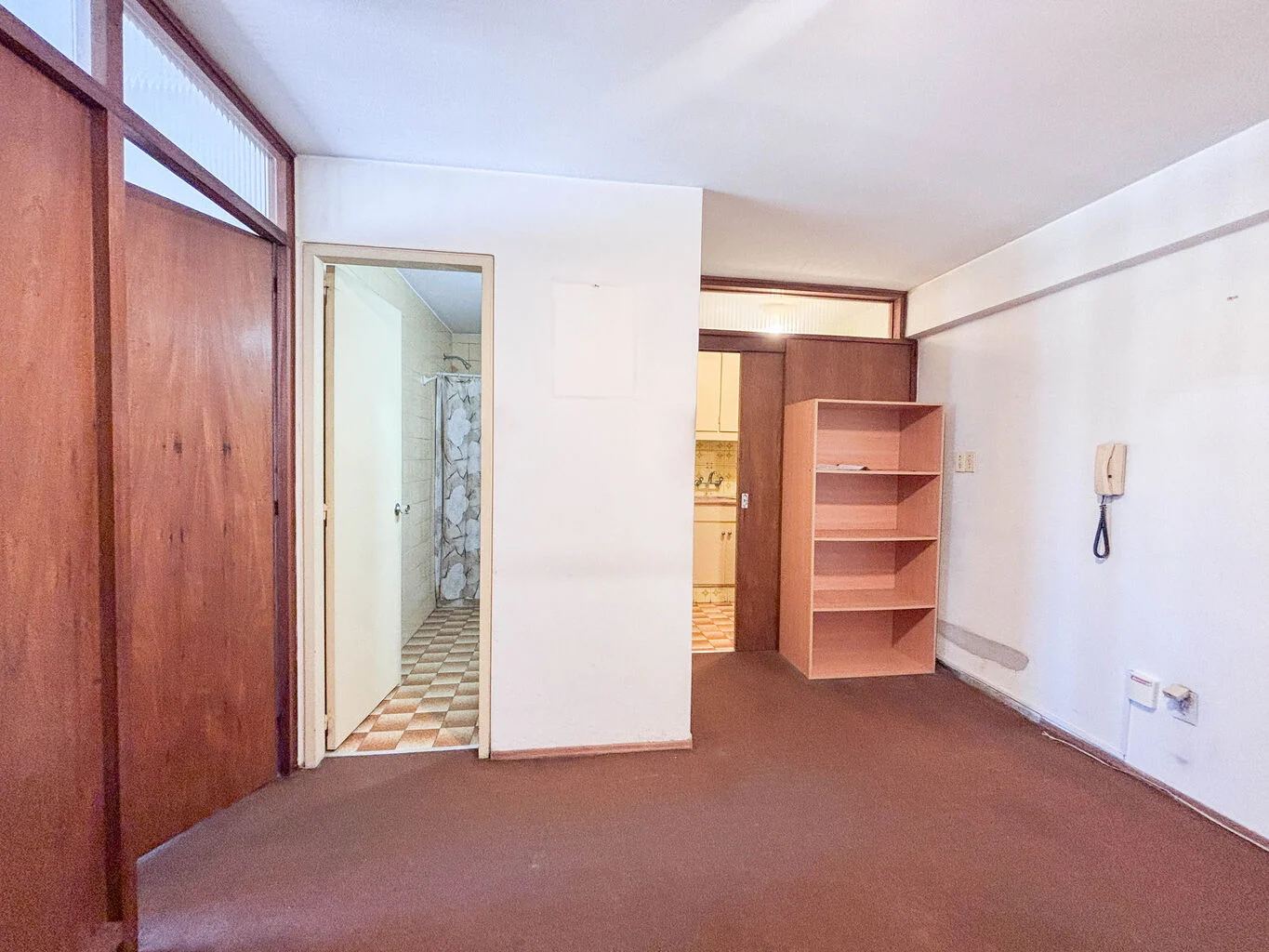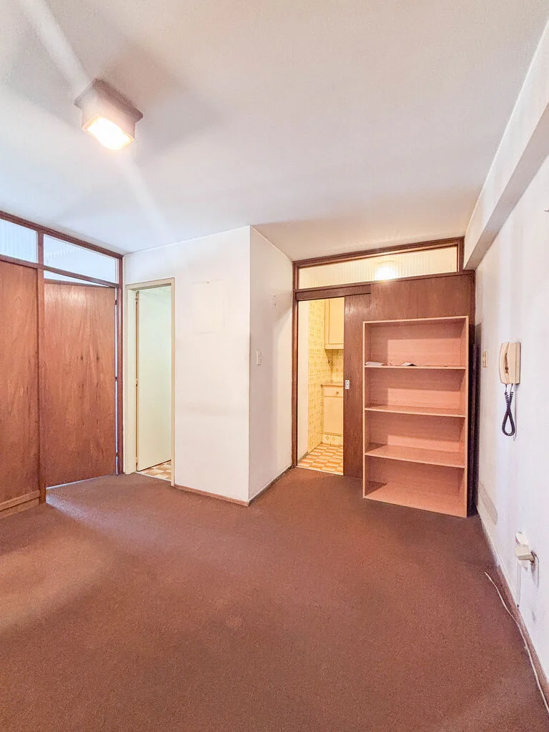 Con un total de 40 m2 la unidad cuenta con living comedor amplio, actualmente con una división liviana de madera y vidrio la cual puede quitarse, cocina definida, un dormitorio amplio y un baño completo. Tanto el living como el dormitorio dan al frente. Baño y cocina están de época.