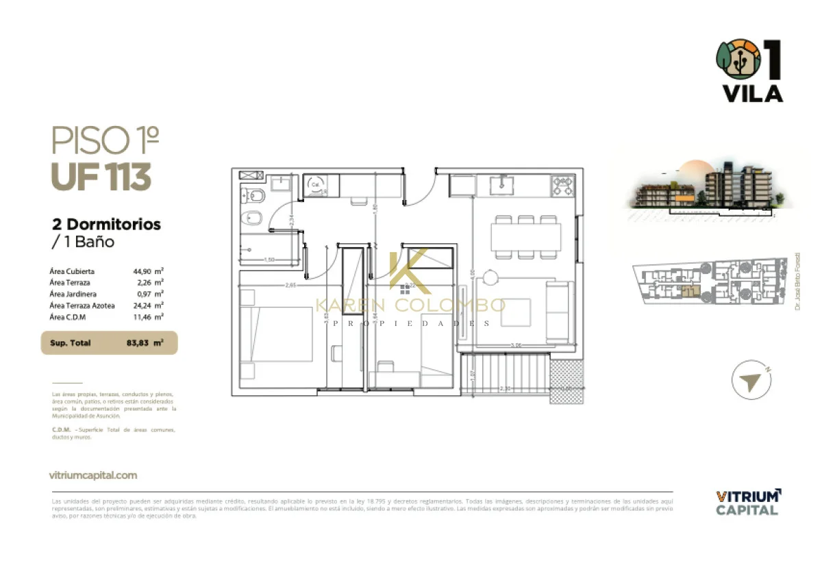 La cocina integrada se conecta armoniosamente con el living comedor, creando un espacio perfecto para compartir momentos con familiares y amigos. Los dos dormitorios son luminosos y acogedores, brindando el refugio ideal después de un largo día.