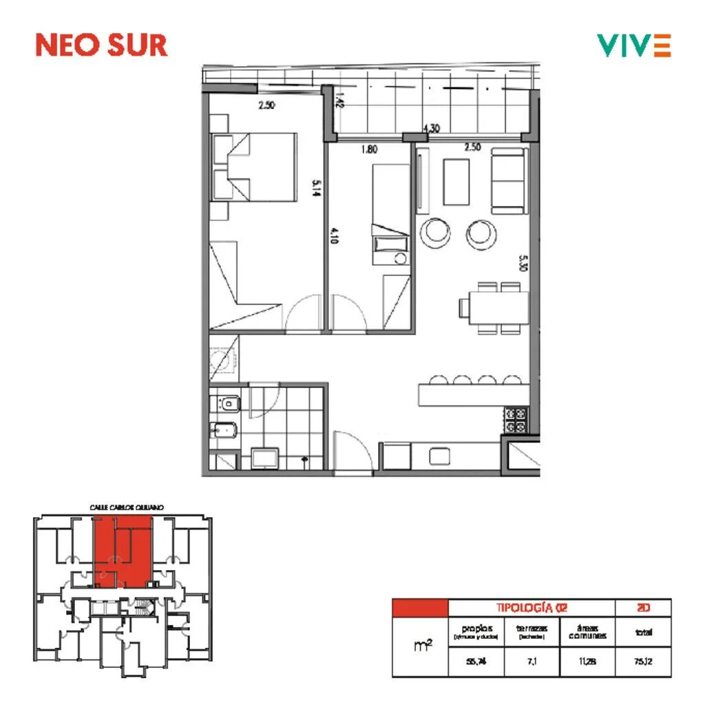 El edificio Neo Sur se ubica en Barrio Sur, calle Carlos Quijano entre Canelones y Maldonado.