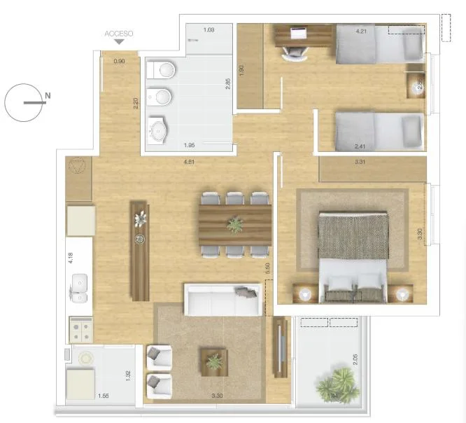 Living comedor apaisado con pisos flotantes y terraza, cocina con placares bajo y sobre mesada, terraza lavadero, 2 dormitorios con placares y pisos flotantes, 1 baño completo.